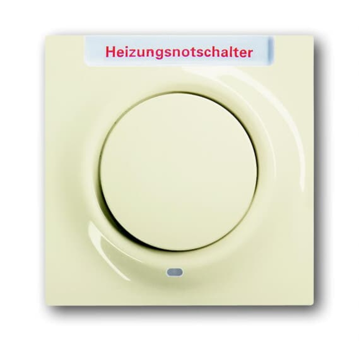 With red neon lens. With labelling field and labelling strip. With marking "Heizung". As cover for flush-mounted control switch 1g1w, DP. As cover for flush-mounted switch 1g1w, 1g2w, intermediate, push-switch. Size of labelling field: 53 x 8,5 mm