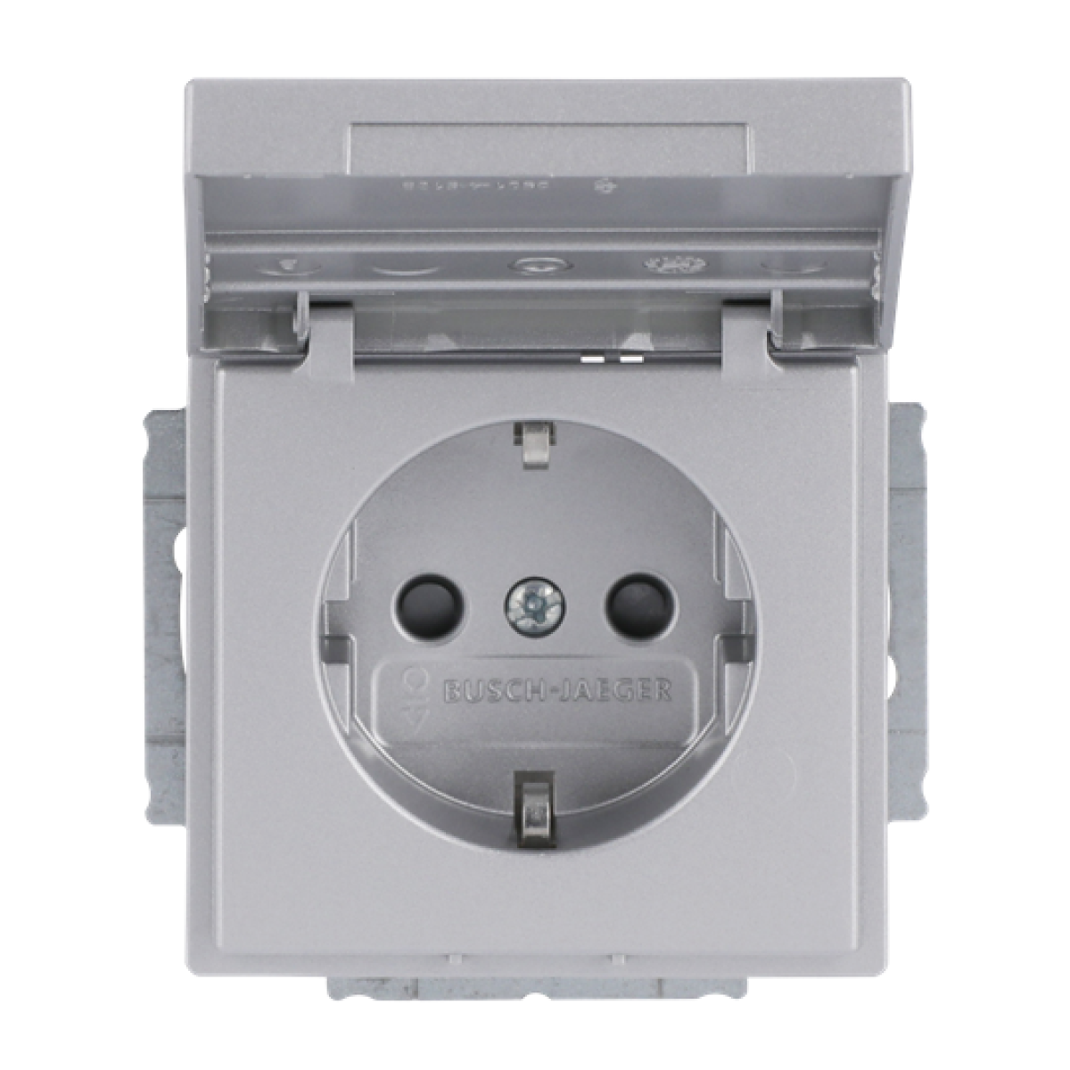 SCHUKO Socket insert with labelling field Safety Shutter with Hinged Lid with label space aluminium silver - Platform 63
