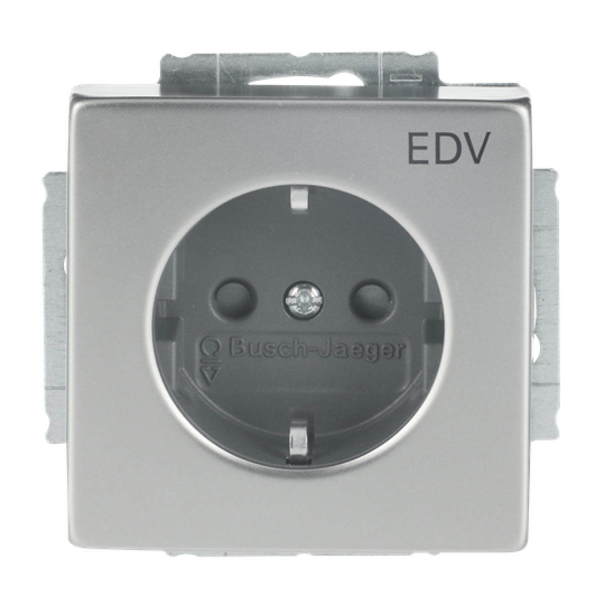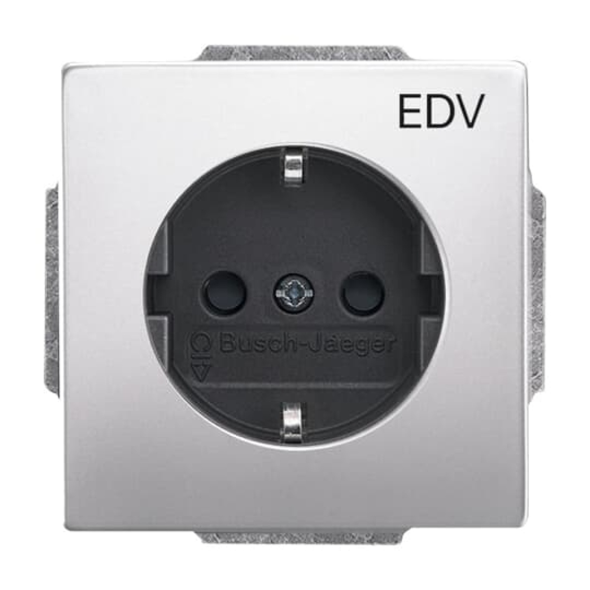 SCHUKO Socket insert with legend EDV Safety Shutter stainless steel - Pure Stainless Steel