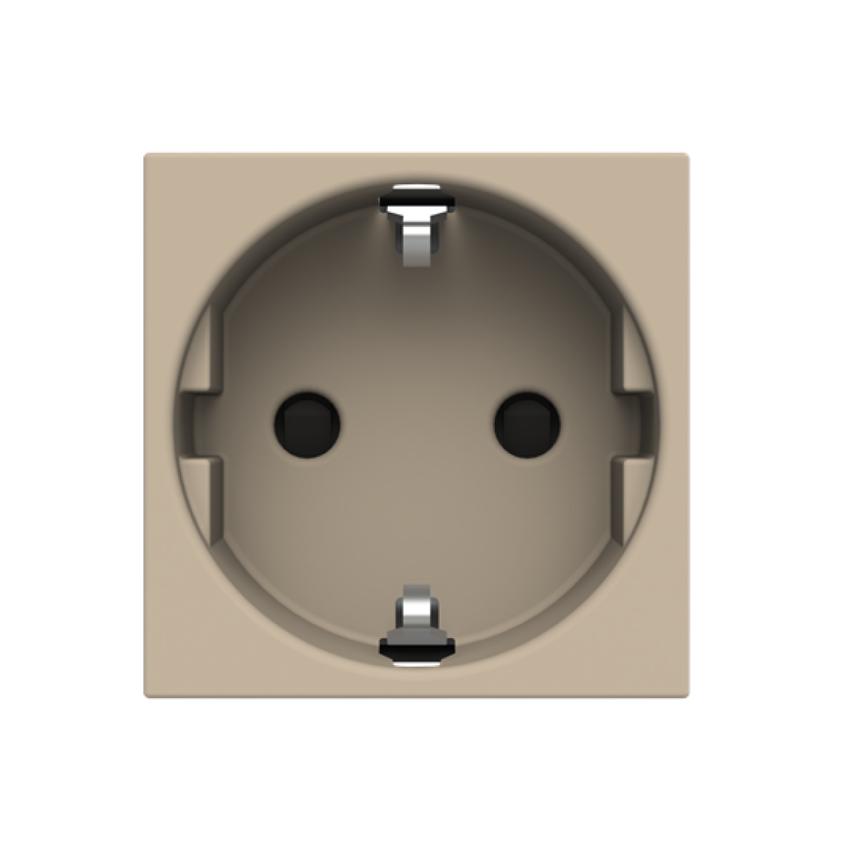 Color: Champagne. Rated voltage: 250 Vac Rated current: 16A Type F: 2P + E Shuttered for child safety Screw terminals Size: 2 modules.