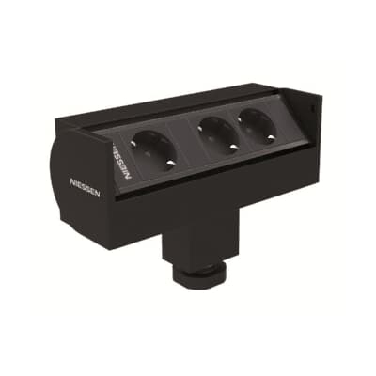 3 socket outlets fully wired with 2,5mm2 halogen free cable. Power input through cable with male rapid connector at end. High fixation with black lacquered support. Mounted on aluminium profile black lacquered. Structure made of aluminium profile. Opening by means of 90º turn with locking and auto-return.