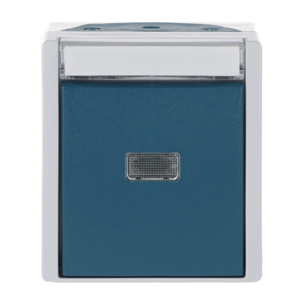 Switch with labelling field Push button, Single push button 1P 1NO grey blue-green - ocean