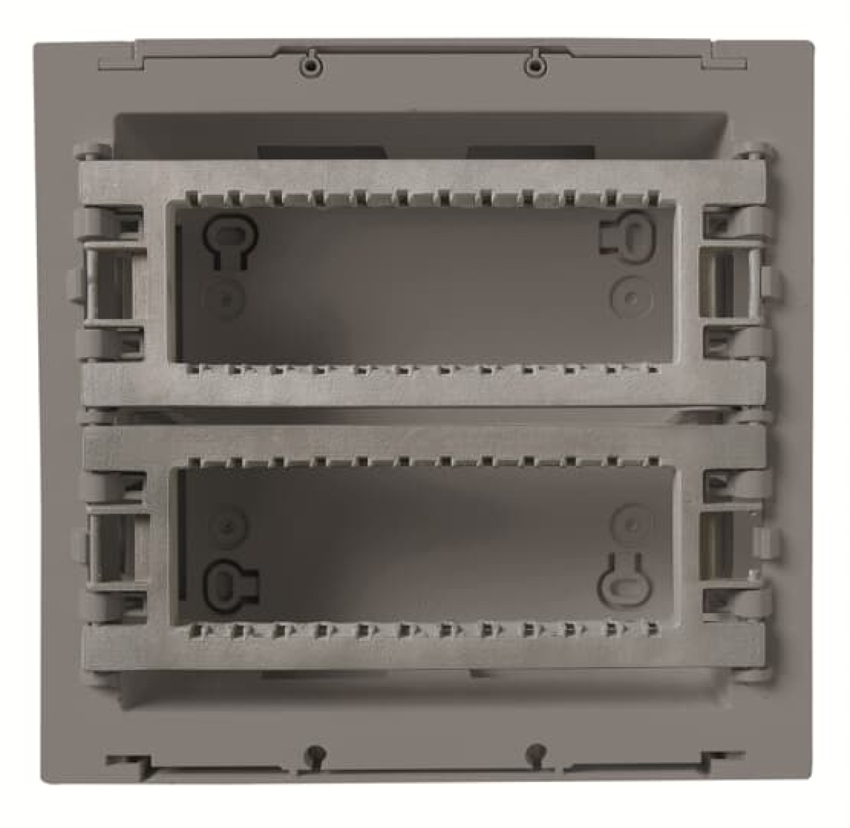Color: Anthracite Zenit centralization box for surface mounted installations. 2-gang - 6+6 modules. For 1, 2 or 3 module devices. Size (height x width x depth): 204 x 212 x 55 mm Included: - Metallic mounting plates (horizontally folding for easy installation) - Screws - Plugs Suitable for frames code: T1272.