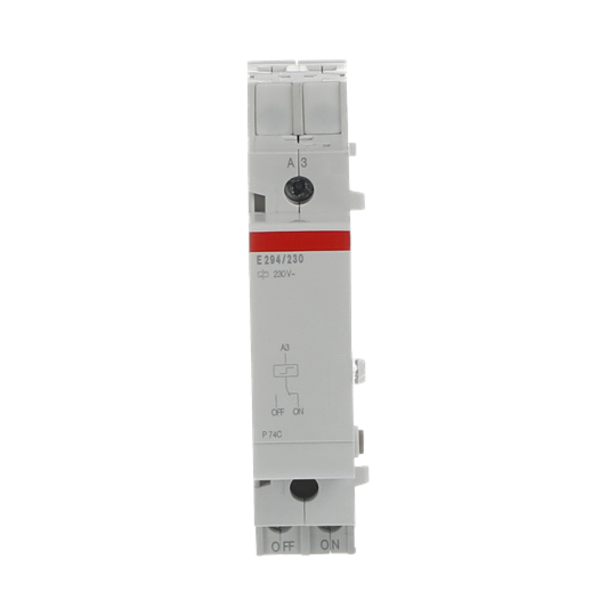 Latching relays are electromagnetically operated devices. The E290 range from ABB can be used to realise a simple, energysaving and efficient lighting control system. These devices are mainly used in rivate houses, factory premises and commercial and public buildings as well as in industrial plants. As a rule, latching relays controlled by means of impulse buttons are installed where it is necessary for lighting to be operated from at least three different places. Each time a command is initiated (by means of an impulse button), an electrical pulse is applied to the coil of the latching relay. The coil in the device is briefly energised and activated. That short pulse to the coil leads to the mechanical latch of the internal main contacts. The internal switching mechanism enables us to achieve a safe and reliable interlock (in the same way as a ballpoint pen). Each pulse that is sent to the magnetic coil system switches the device ack to its previous position where it is held mechanically until the next control pulse is received. The devices are designed for rated currents 16 and 32A. Through the combinable accessories the main modules can be used in nearly all market applications.