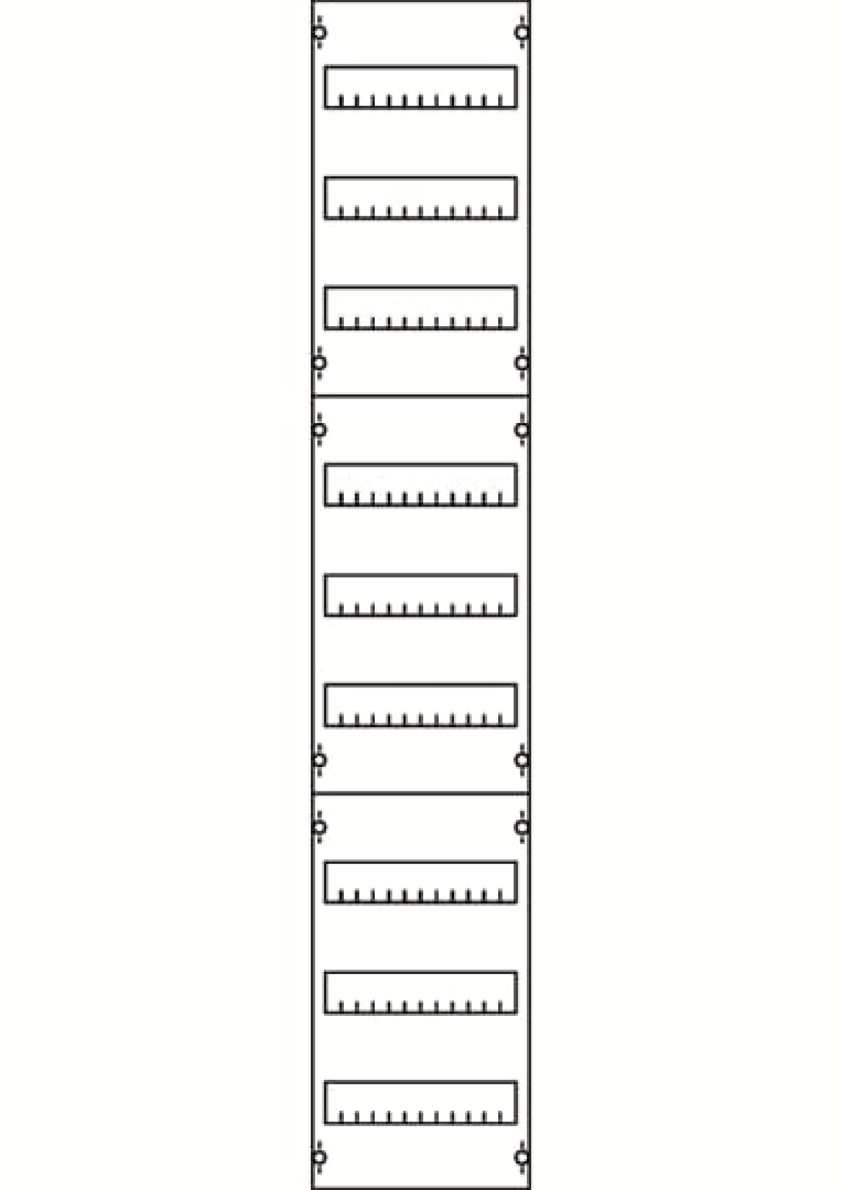 Interior fitting system, Distribution panels, mounted on EDF-Profile, for DIN rail mounting devices, Grid unit 9 GU = 1350 mm, panel width 1 = 250 mm, 108 Space units, Row distance in mm: 125, assembled with DIN rail 35 x 15 mm with perforation for wire holders, covers out of Plastic, 90 degree press and turn closure, RAL 7035, Design of the cover: with cut-out, usuable as of the cabinet depth of 120 mm, distribution panels or combinations must have the same grid units as the cabinets, in which they are installed. For floor standing and switch gear cabinets, two panels or combinations must be installed next to each other. The EDF profile rails are included in the scope of delivery.