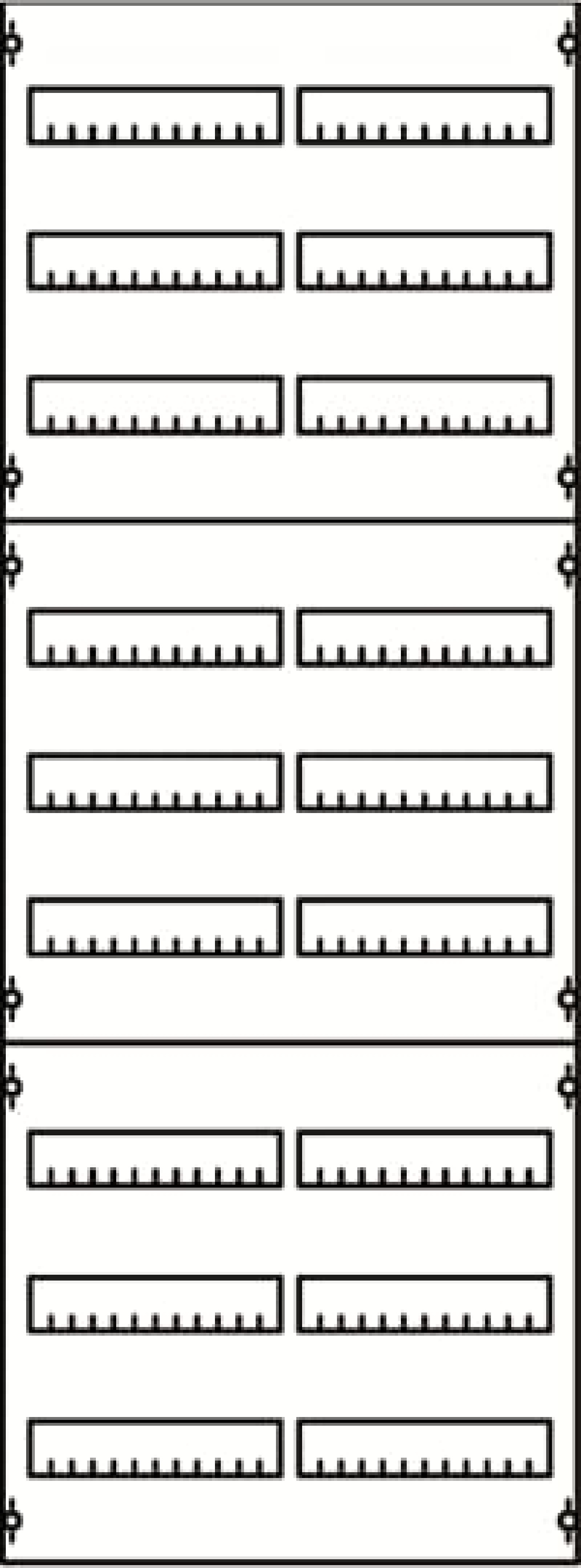 Interior fitting system, Distribution panels, mounted on EDF-Profile, for DIN rail mounting devices, Grid unit 9 GU = 1350 mm, panel width 2 = 500 mm, 216 Space units, Row distance in mm: 125, assembled with DIN rail 35 x 15 mm with perforation for wire holders, covers out of Plastic, 90 degree press and turn closure, RAL 7035, Design of the cover: with cut-out, usuable as of the cabinet depth of 120 mm, distribution panels or combinations must have the same grid units as the cabinets, in which they are installed. For floor standing and switch gear cabinets, two panels or combinations must be installed next to each other. The EDF profile rails are included in the scope of delivery.