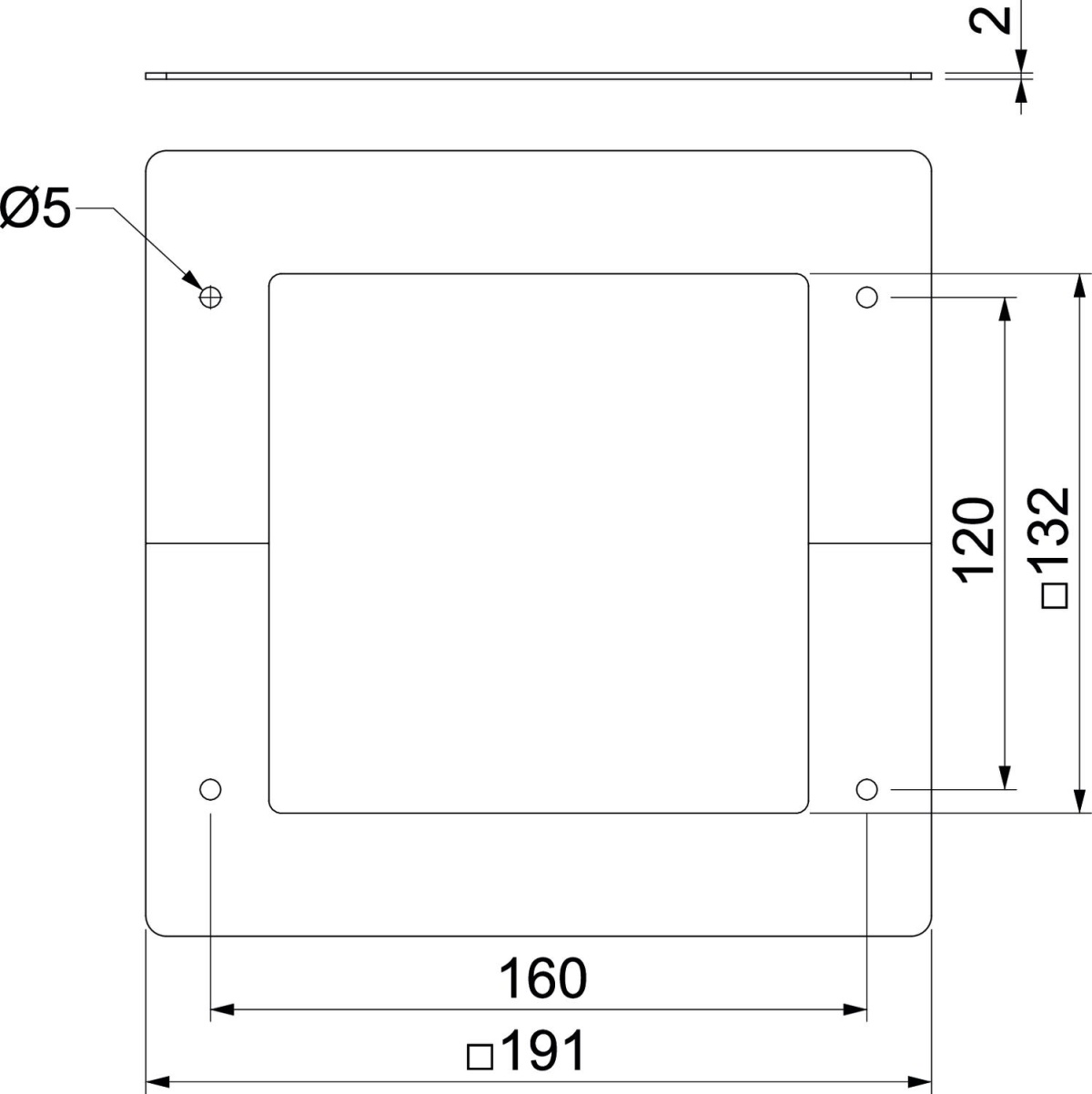 Ceiling panel for service pole 130x130 mm 192x192x2 Aço alumínio branco RAL 9006