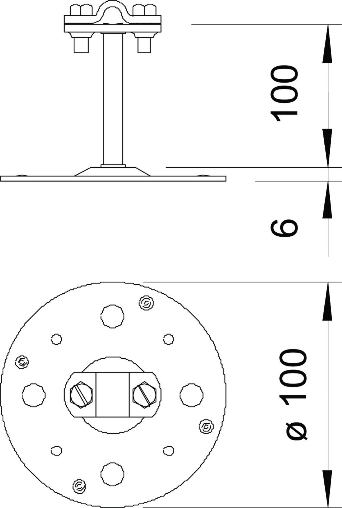 Abraçadeira de telhado para coberturas planas 100mm Aço Galvanizado por imersão a quente após maquinação