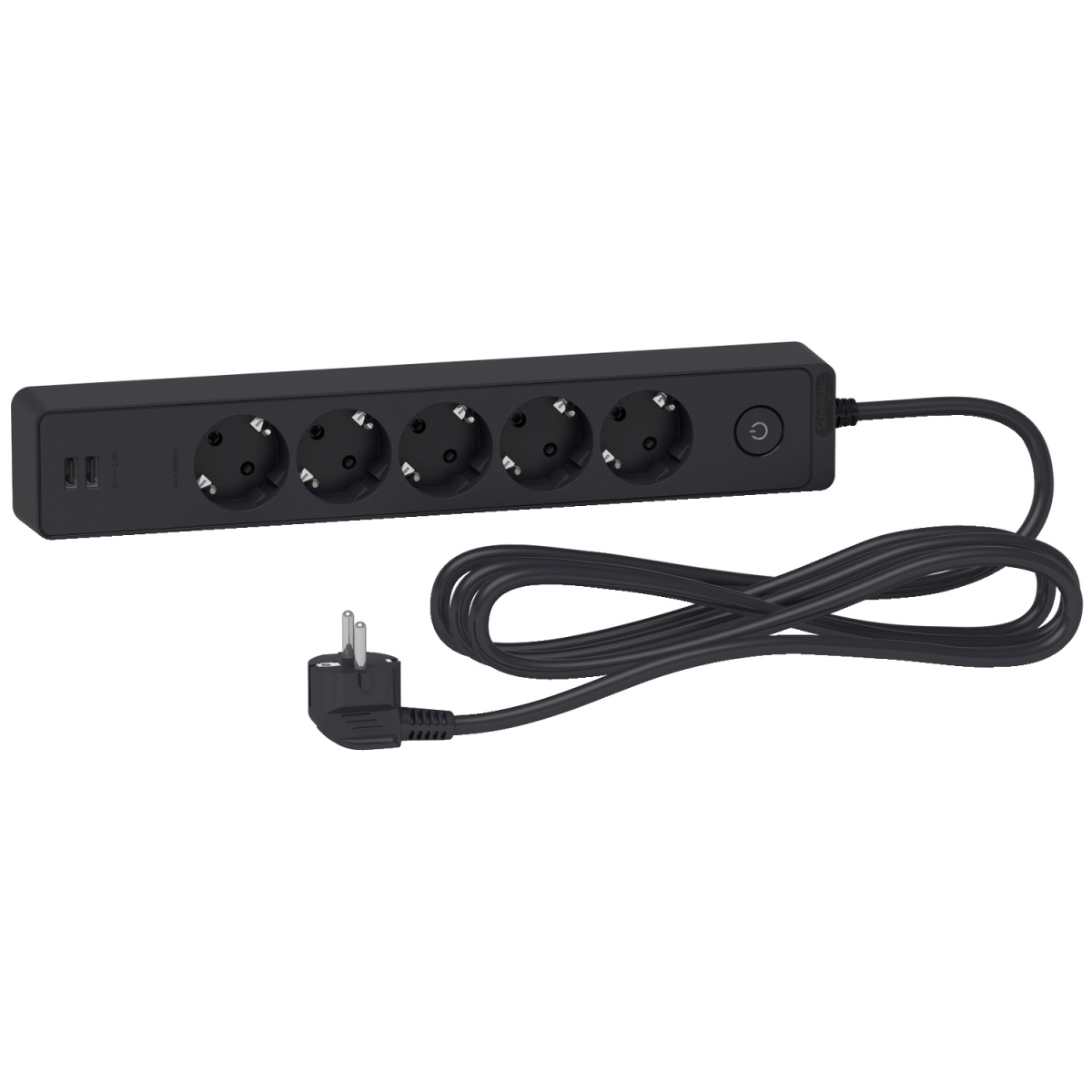 Bloco multitomadas 5 tomadas 2PT e 2 tomadas USB