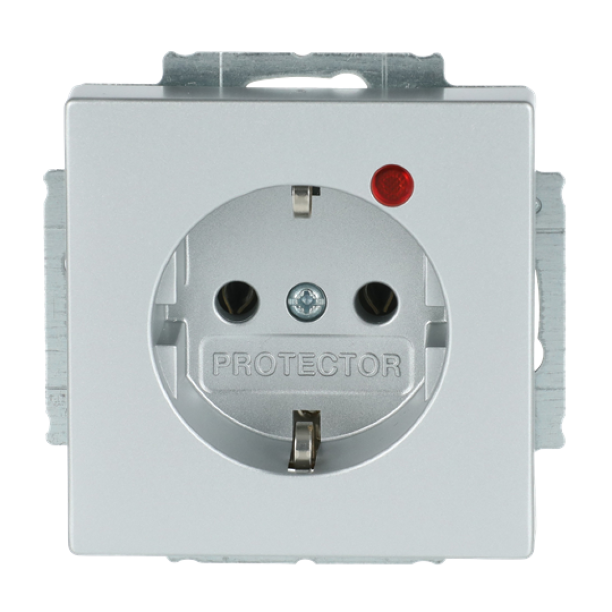 Busch-Protector SCHUKO socket insert with Neon lamp Red with screw terminals aluminium silver - Platform 63