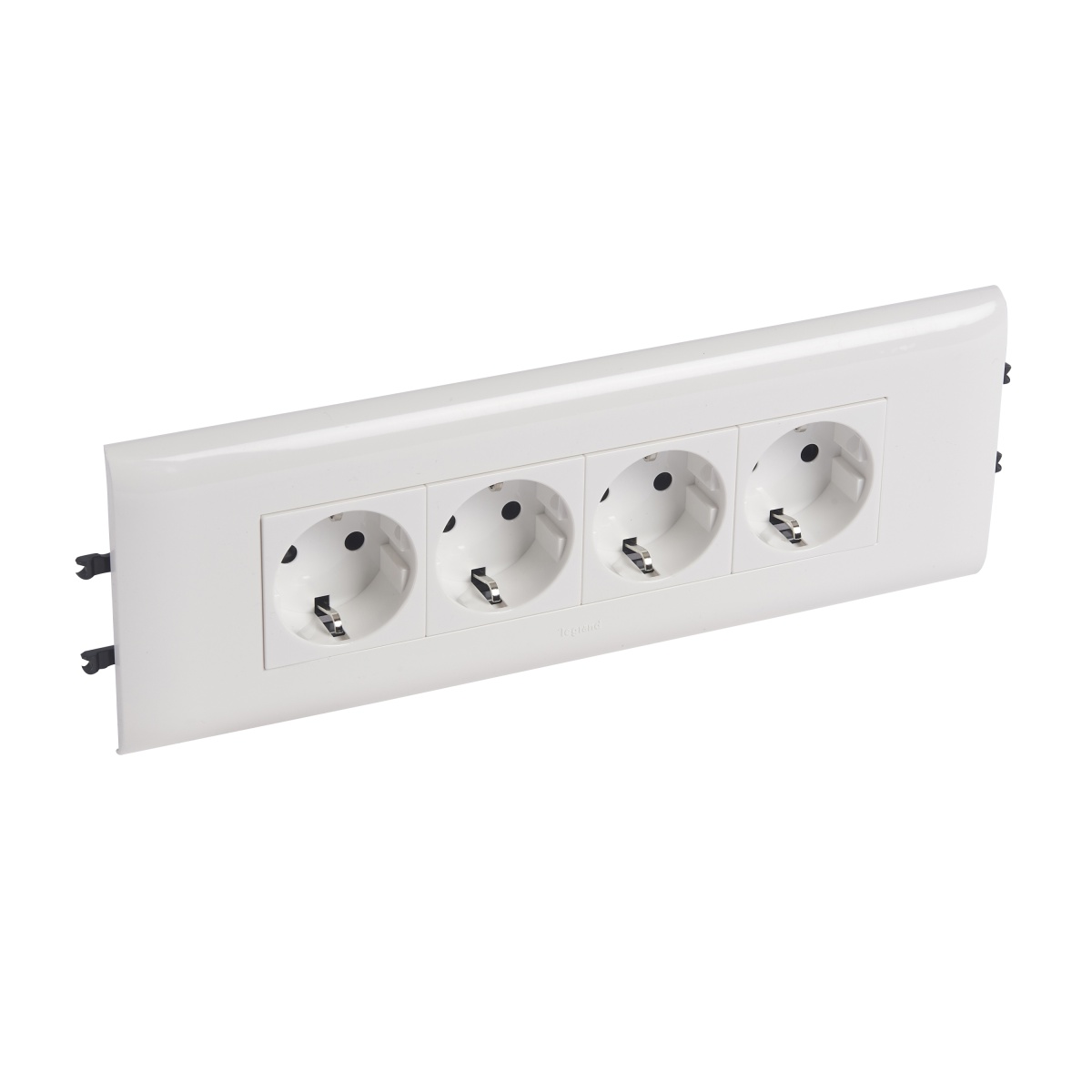 Mosaic - Tomada 4x2PT Schuko p calhas com tampa de 85 mm - alvéolos protegidos