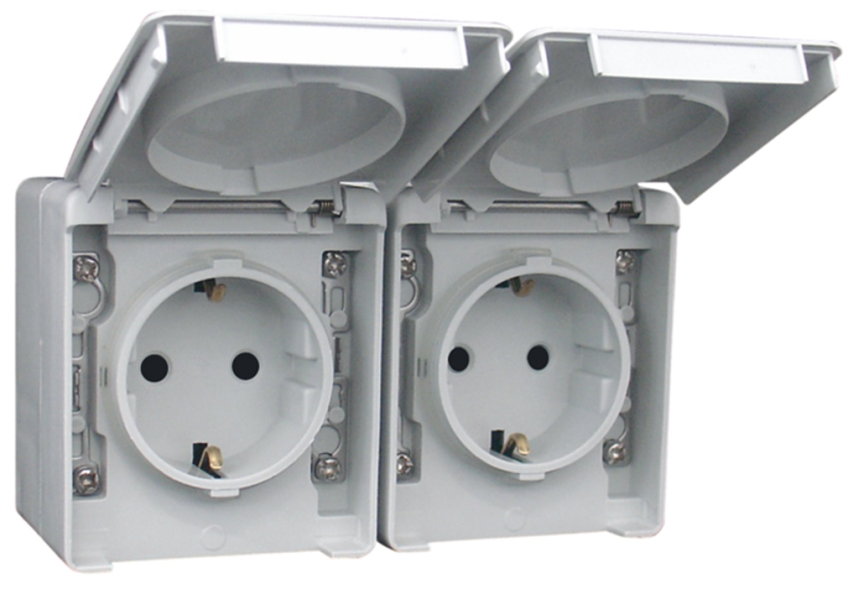 TOMADA DUPLA SCHUKO HORIZONTAL CINZENTA
