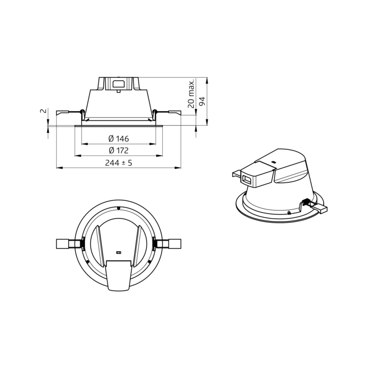 Luminaire with limited surface temperature, sign "D according to EN 60598-2-24