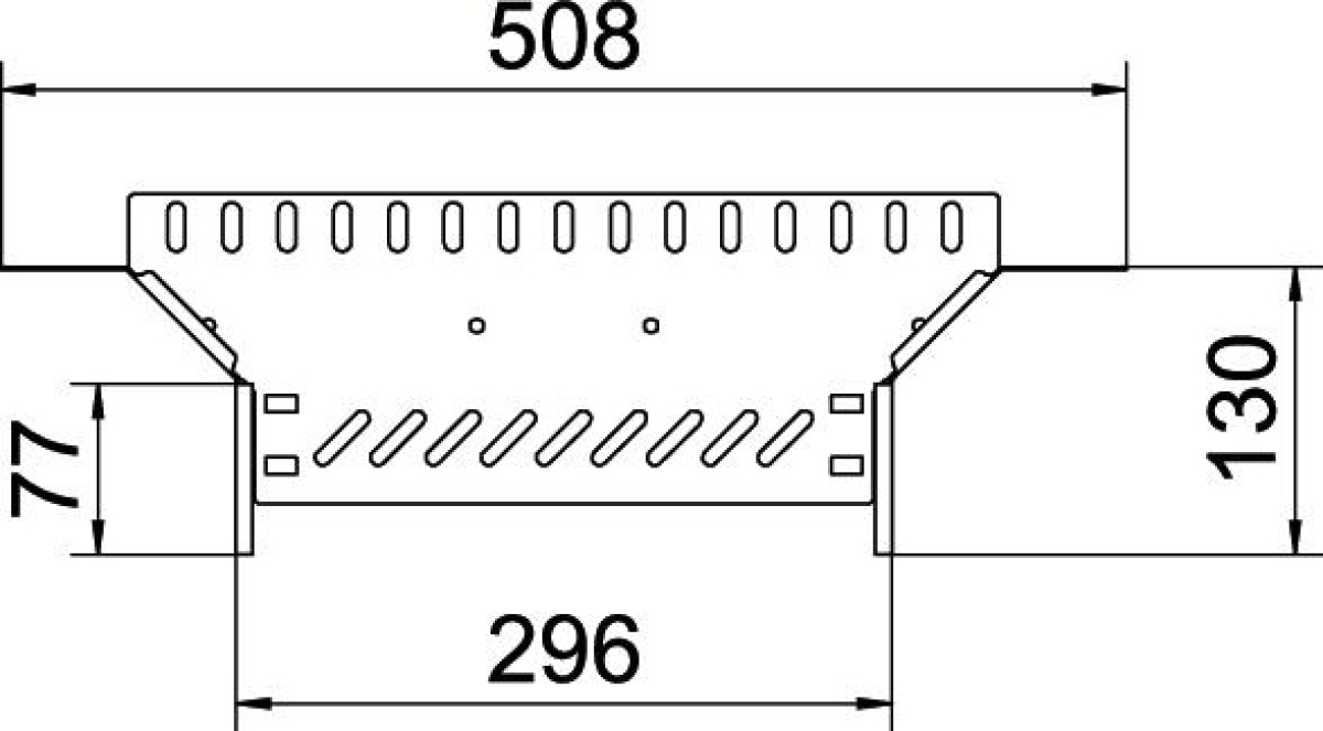 Derivação simples para a criação de um ramal ou cruzeta horizontal, para caminhos de cabos em chapa de encaixe e de aparafusar, altura lateral de 110 mm. Montagem sem parafusos com grampos duplos ou ligação roscada com parafusos de cabeça boleada FRS e porcas combinadas M6. Aplicável em áreas interiores. O material de fixação terá que ser encomendado em separado.