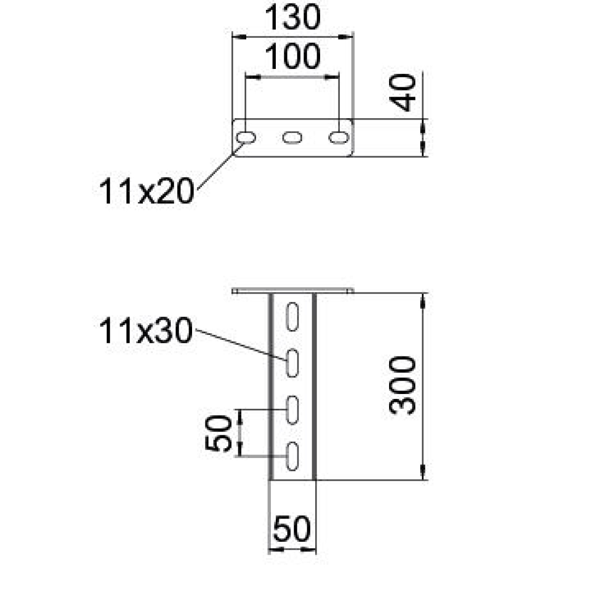 Pendural (perfil em U), nas dimensões 50 x 30 mm, com cabeça de perfil soldada. Para a fixação em tetos de betão horizontais e em vigas de aço. Revestido a pó em preto profundo (RAL 9005). Com larguras de consola superiores a 400mm ou na montagem de consolas na extremidade de suportes suspensos, é recomendável a utilização do distanciador tipo DSK 25.