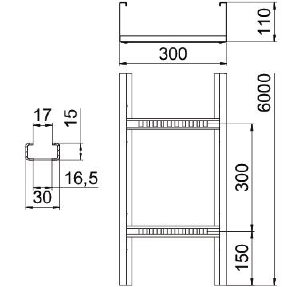 Caminho cabo escada grande vão aba perfurada 110x300x6000 Aço galvanizado pelo método Sendzimir zinco