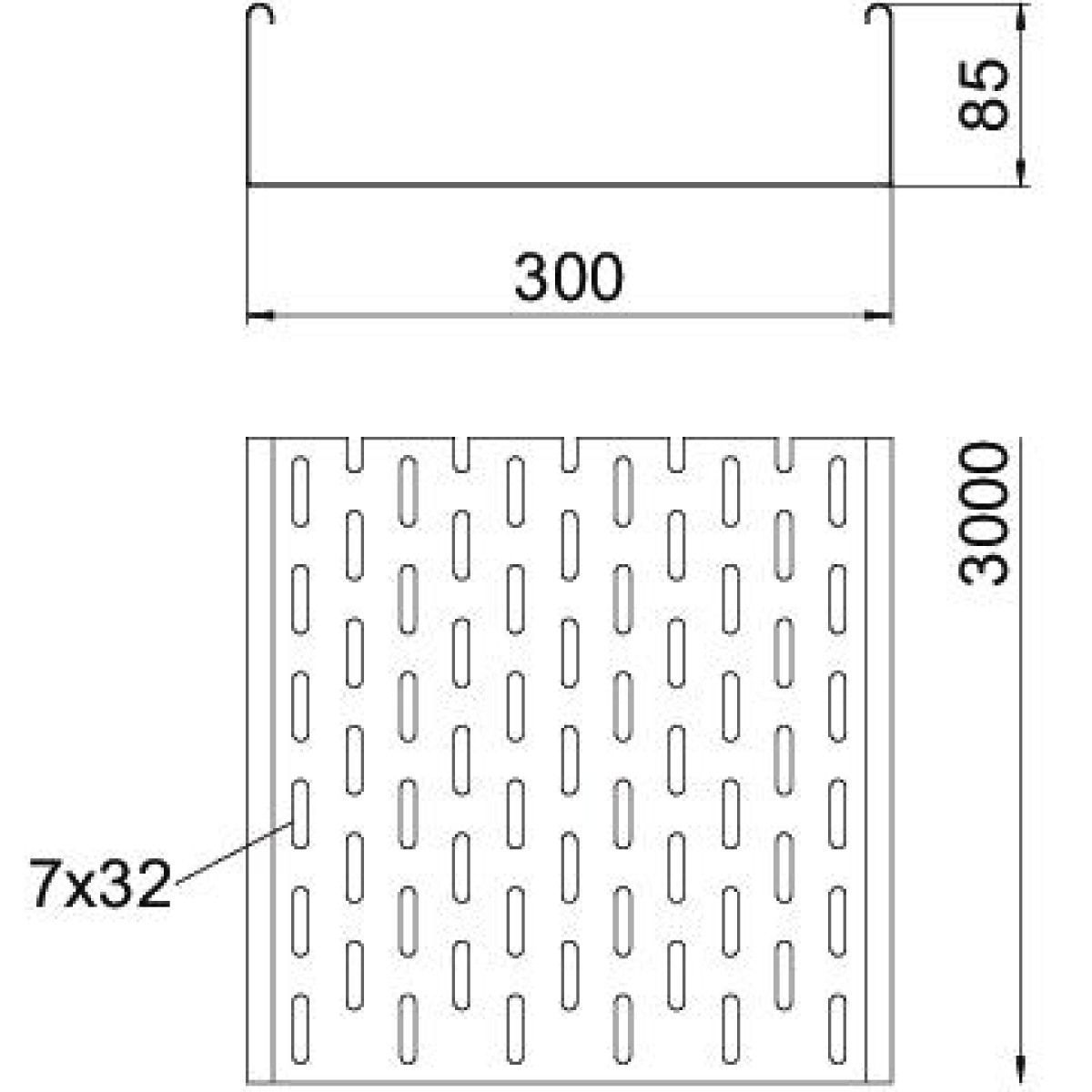 Caminho de cabos em chapa MKS perfurada 85x300x3000 Aço galvanizado pelo método Sendzimir zinco