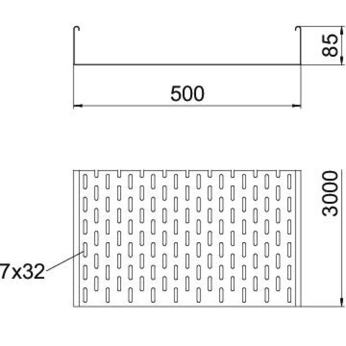 Caminho de cabos em chapa MKS perfurada 85x500x3000 Aço galvanizado pelo método Sendzimir zinco