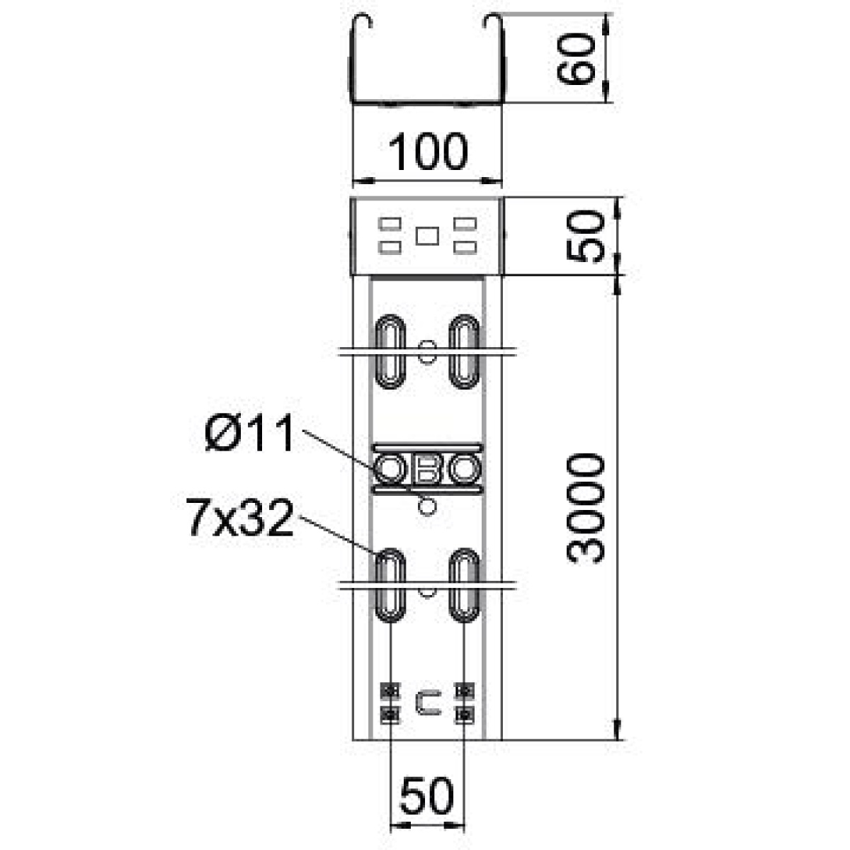 Caminho de cabos em chapa RKSM Magic, com união de encaixe 60x100x3050 Aço PES135 - Poliéster preto RAL 9005