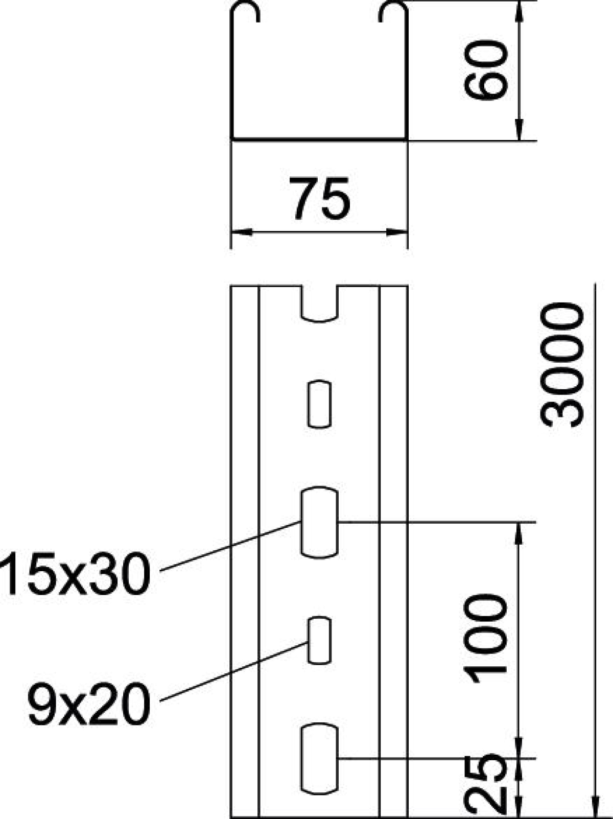 Esteira de suporte luminárias 60x75x3000 Aço galvanizado pelo método Sendzimir zinco