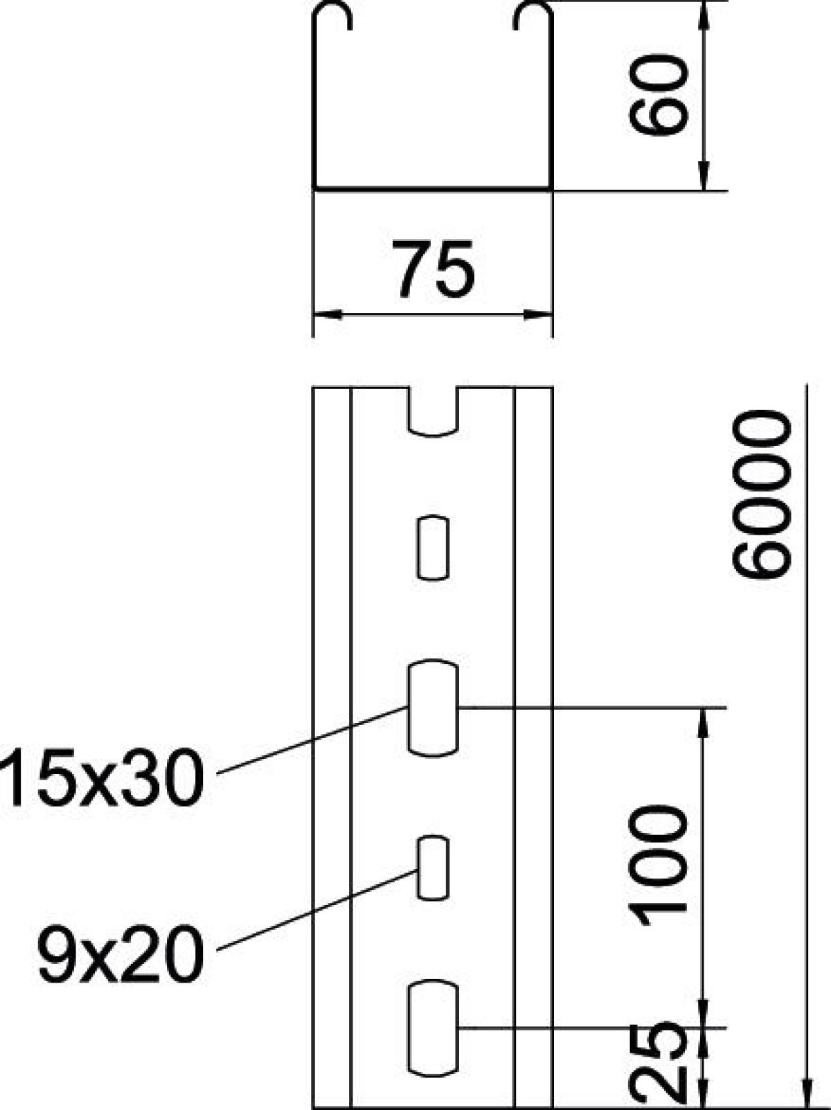 Esteira de suporte luminárias 60x75x6000 Aço galvanizado pelo método Sendzimir zinco