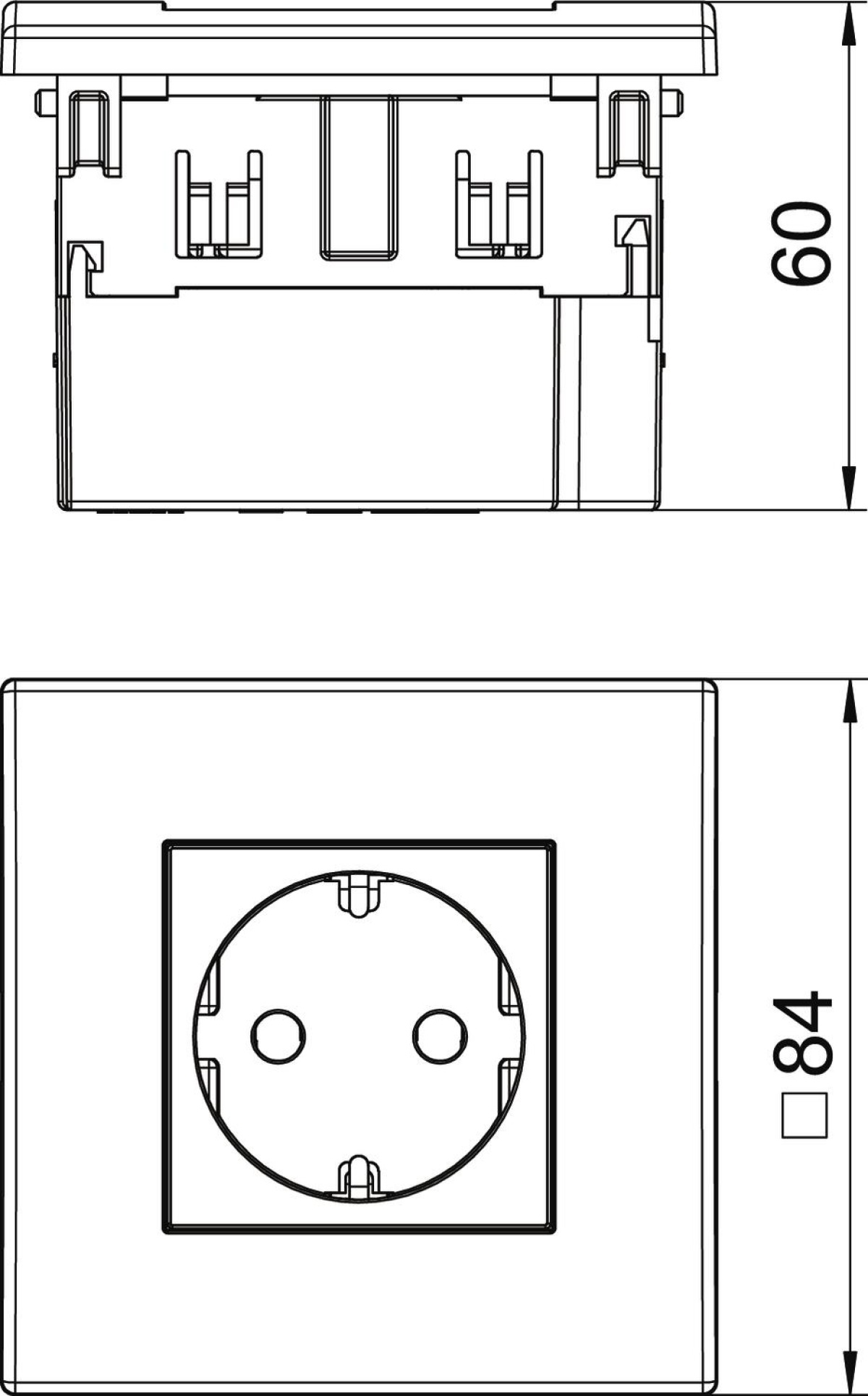Unidade de tomadas Modul 45, simples 84x84x59mm Policarbonato branco puro RAL 9010
