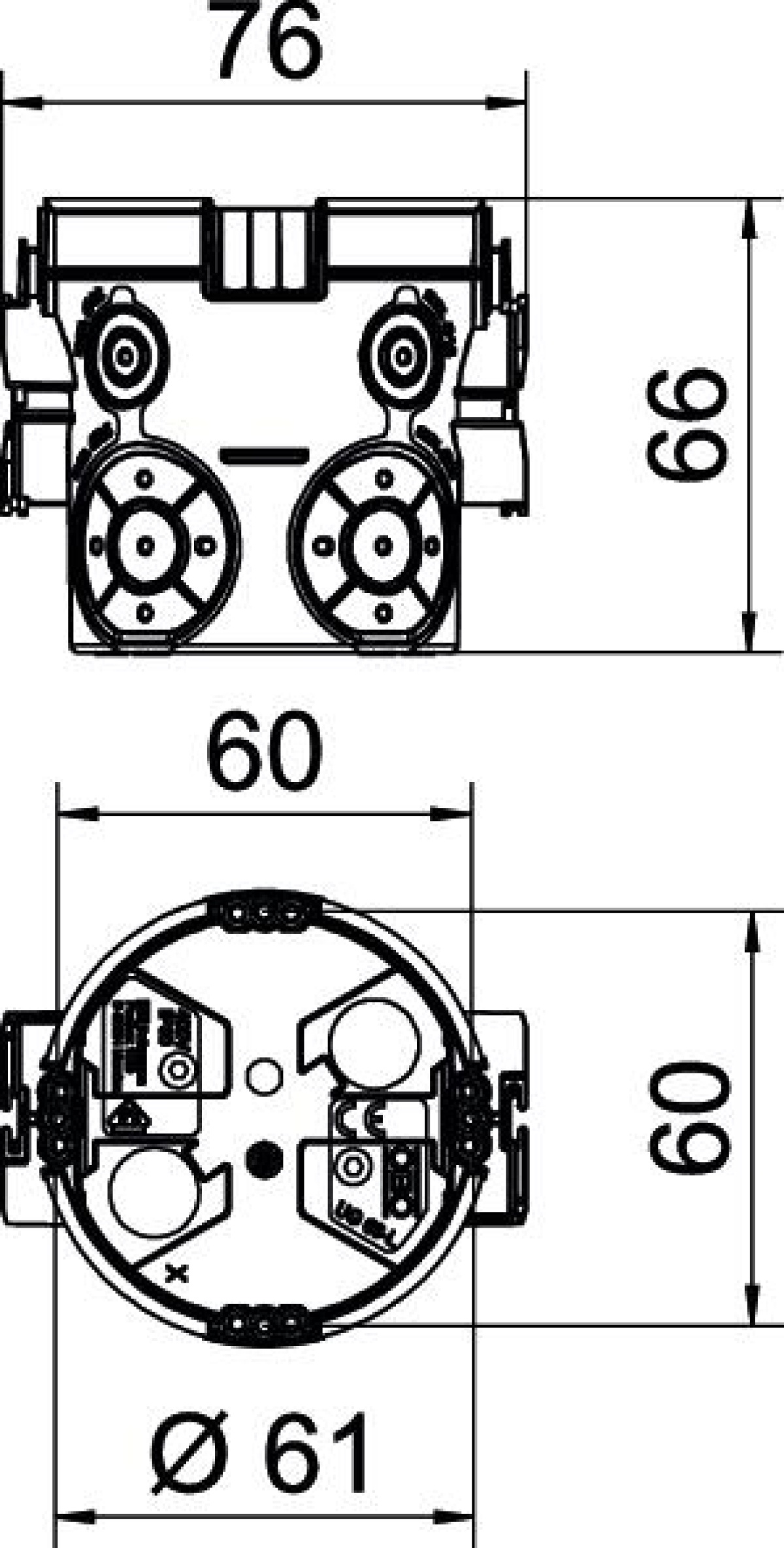 Caixa de aparelhagem UP hermética Ø60mm, H66mm Polipropileno Elastómero termoplástico preto negro azul acinzentado