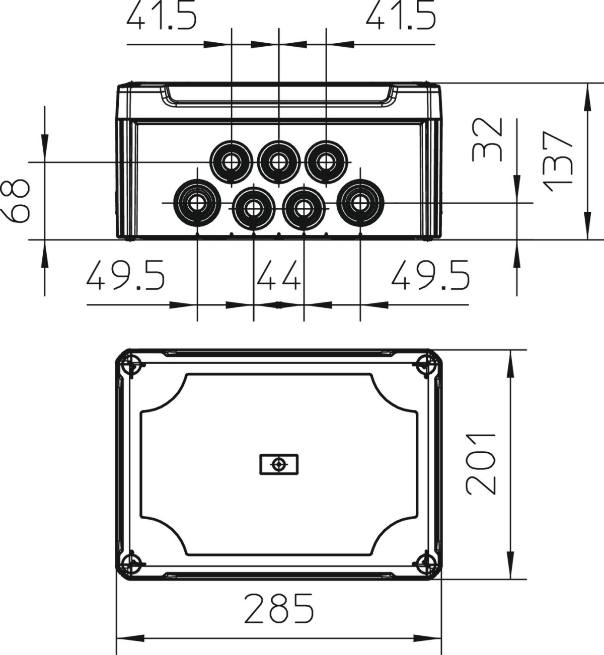 Caixa de derivação para conectar cabos em áreas interiores e áreas exteriores protegidas. Forma retangular com bucins cónicos. Adequado para a montagem na parede e teto, a montagem em suportes para caixas de derivação e na base da caixa. Com opção de fixação interna e montagem através de parafusos nos cantos. Tampa alta com fecho rápido, pode ser selada a chumbo. Fabricada em materiais resistentes aos raios UV e livres de halogéneo.