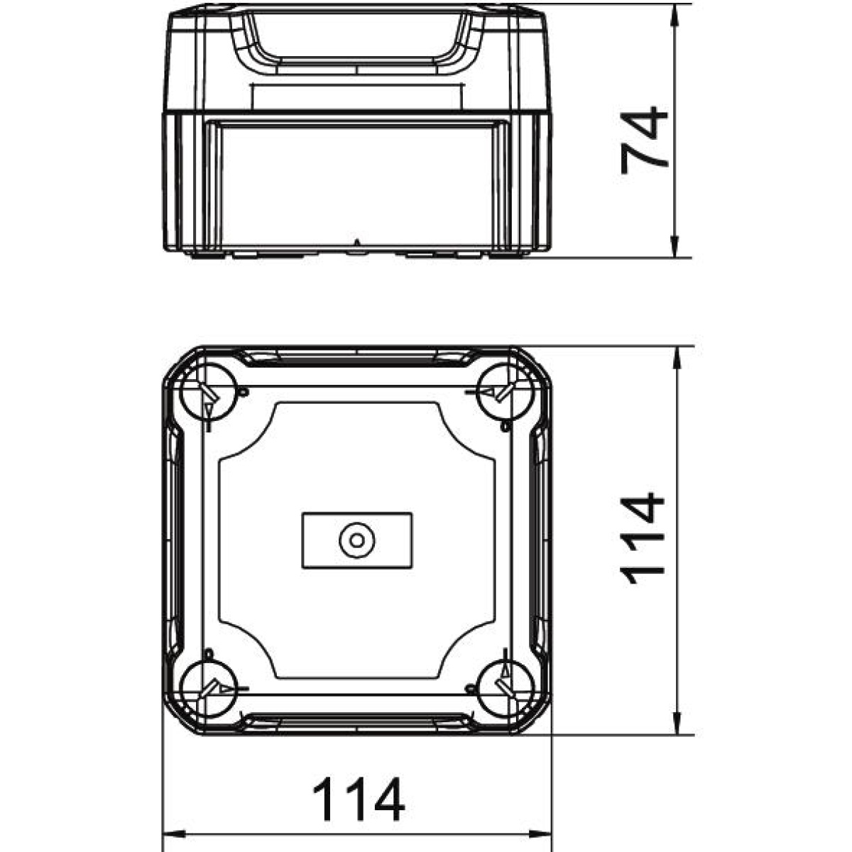 Caixa de derivação fechada para conectar cabos e condutas na área interior e áreas exteriores protegidas. Forma quadrada sem entradas. Adequado para a montagem na parede / teto e para a montagem em suportes para caixas de derivação. Com opção de fixação interna e montagem através de parafusos nos cantos. Tampa alta com fecho rápido, pode ser selada a chumbo. Fabricada em materiais resistentes aos raios UV e livres de halogéneo. Inclui calha DIN perfilada Caixa de derivação de acordo com a DIN EN 60670. Resistente ao fio incandescente segundo a DIN EN 60695-2-11, temperatura de ensaio 650 °C. Resistência ao impacto IK07 de acordo com a DIN EN 50102.