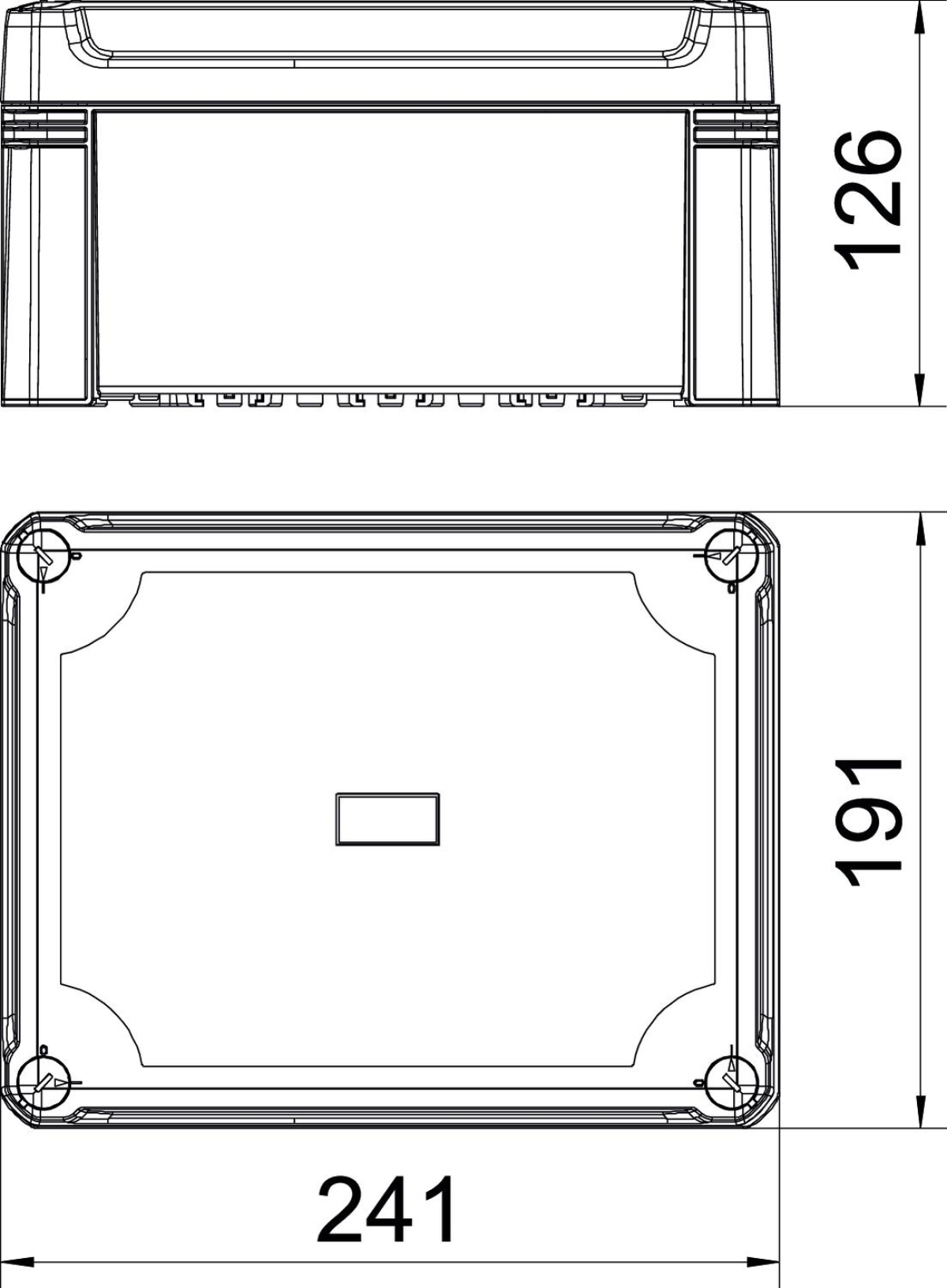 Caixa de derivação para conectar cabos e tubos em áreas interiores e exteriores. Forma retangular sem entradas. Adequado para montagem na parede e teto com opção para fixação externa ou montagem através de parafusos nos cantos. Particularmente resistente ao impacto com IK09. Tampa com fecho rápido, pode ser selada a chumbo. Fabricada em materiais resistentes aos raios UV e livres de halogéneo.
