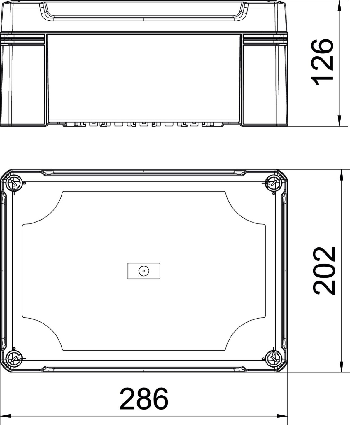 Caixa vazia com calha DIN 2069 286x202x125 Policarbonato cinzento claro RAL 7035