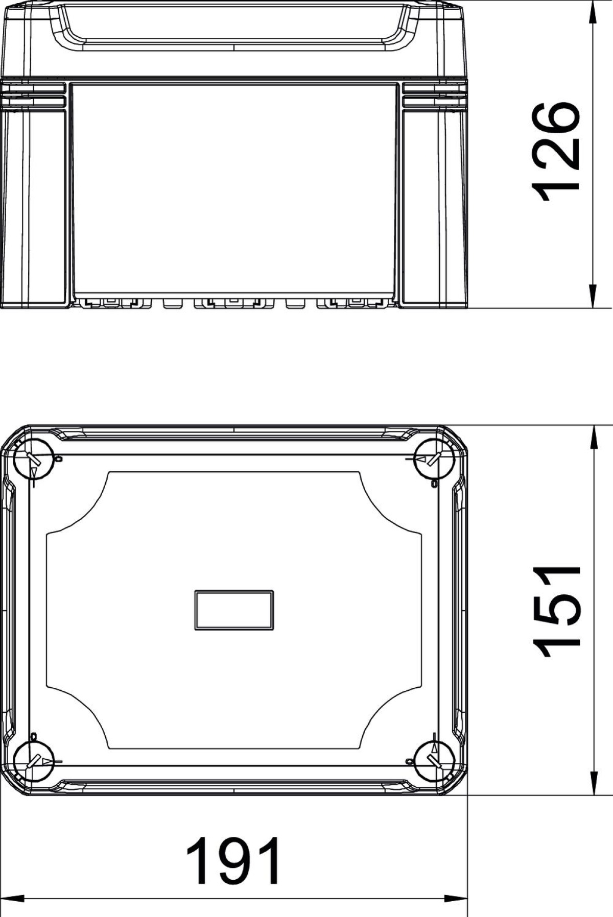 Caixa de derivação com calha DIN para conectar cabos e tubos em áreas interiores e exteriores. Forma retangular sem entradas. Adequado para montagem na parede e teto com opção para fixação externa ou montagem através de parafusos nos cantos. Particularmente resistente ao impacto com IK09. Tampa transparente com fecho rápido, pode ser selada a chumbo. Fabricada em materiais resistentes aos raios UV e livres de halogéneo.