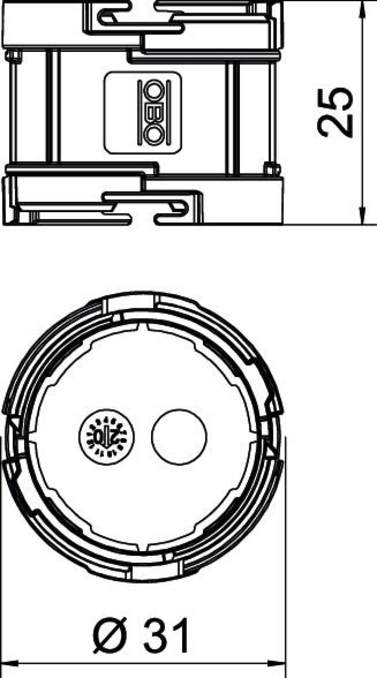 Espaçador com fecho de baioneta para a combinação estável de várias caixas de aparelhagem de encastrar. Para expandir o espaçamento padrão de 71 mm em 20 mm.