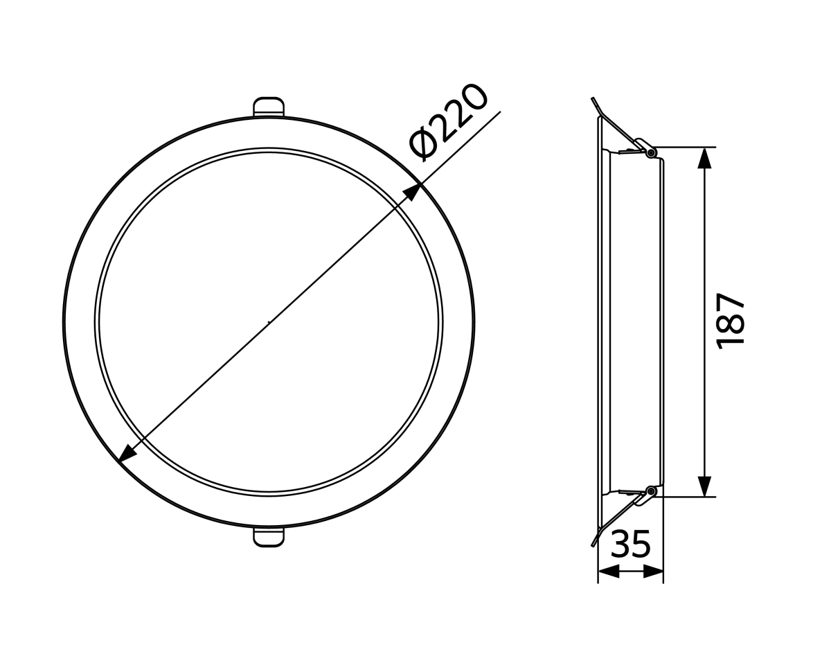 Stylish and compact LED downlight. Sturdy full metal housing. Integrated driver for easier installation. Low height of only 35mm. IP44 on light emitting side.