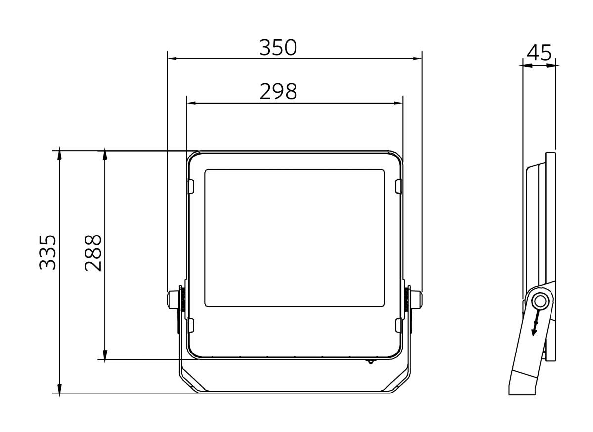Complete floodlight family from 10 to 200W. Equipped with breather to prevent condensation.