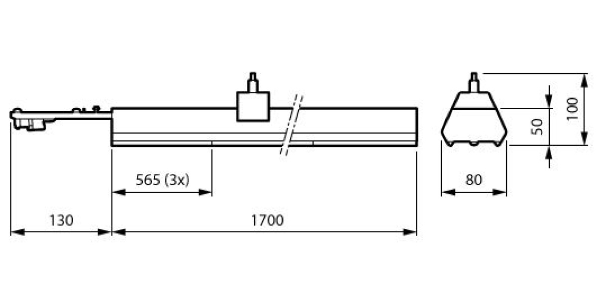 L1700 mm, Aço, Branco, Branco sinalização (RAL9016), Unidade de fonte de alimentação (aceso/apagado), 12000 lm, 80 W, 150 lm/W, 4000 K, (0.38, 0.38) SDCM 3, Feixe largo, Fosco, Policarbonato, IP20 | Proteção de dedos, IK02 | 0,2 J standard, Classe de segurança I, Unidade de ligação de 5 polos