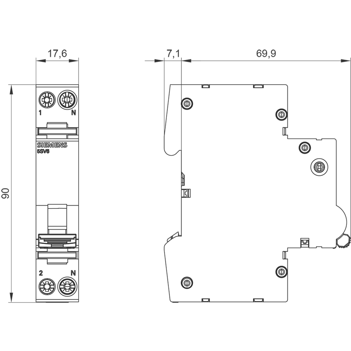 5SV6 AFDDMCB 6 kA B10 1N 1 MW bulk packaging 12 units