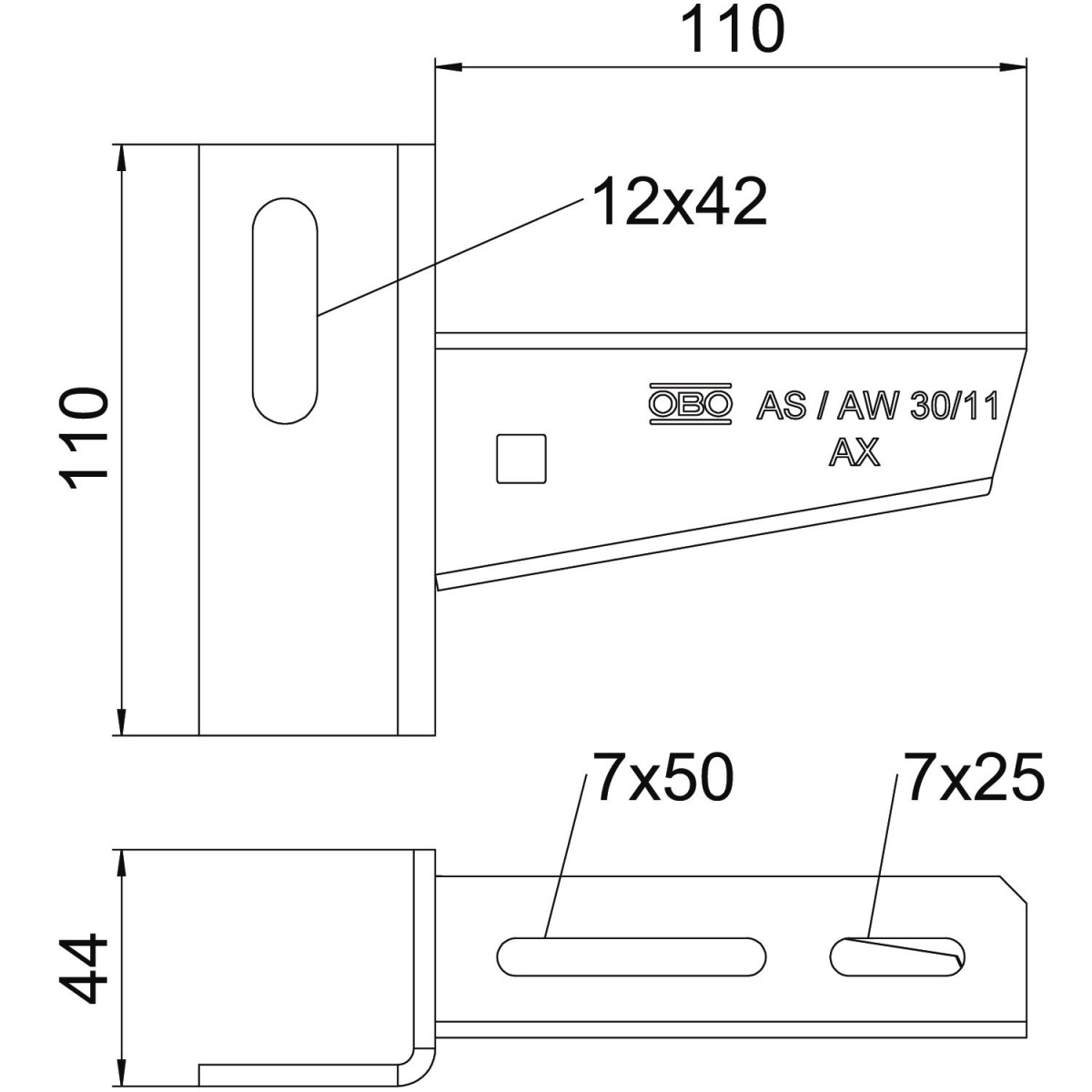 Wall and support bracket with angle head plate B110mm Aço Galvanizado por imersão a quente após maquinação zinco