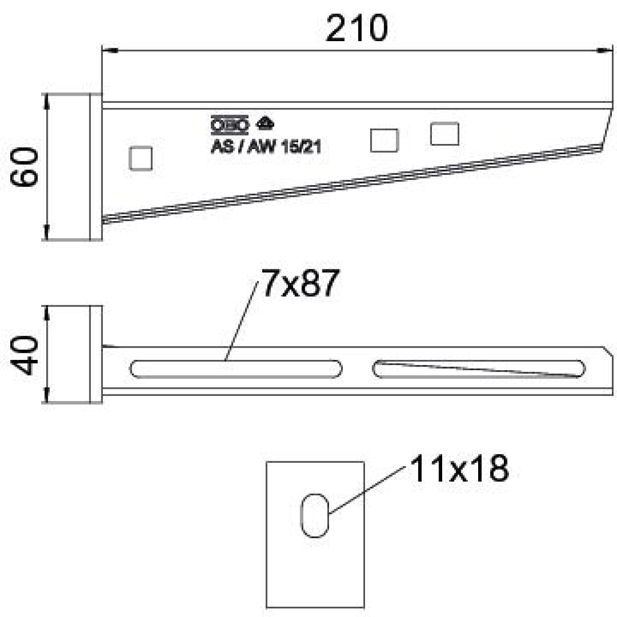 Wall and Support bracket with welded head plate B210mm Aço PES135 - Poliéster preto RAL 9005