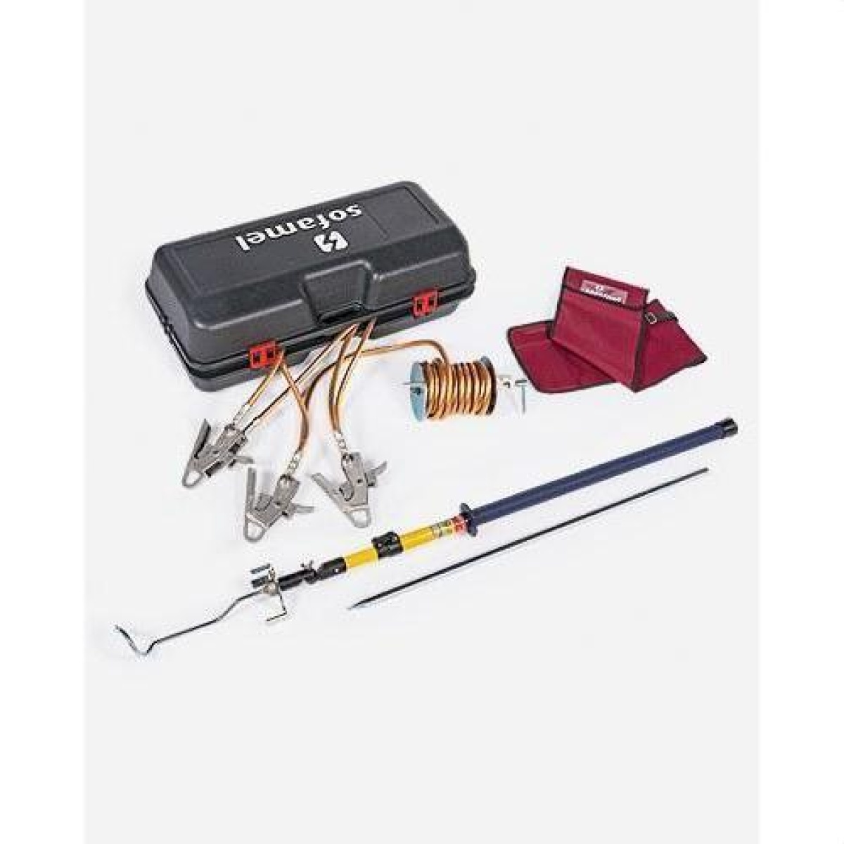 Línea aérea de media tensión modelo PATL-MCL-3/5035 con 3 pinzas MCL, corriente asignada ICC máximo entre fases 12,0KA/1s. Equipo de puesta a tierra y cortocircuito para líneas aéreas de media tensión. El objetivo principal de su instalación es la protección del trabajador ante la puesta en funcionamiento accidental o un posible retorno de tensión durante los trabajos de reparación. La pinza MCL se instala sobre el conductor mediante presión y se extrae mediante un gancho de recuperación. Las tres pinzas se pueden colocar al mismo tiempo gracias al plato portapinzas, facilitando así el trabajo del operario.
