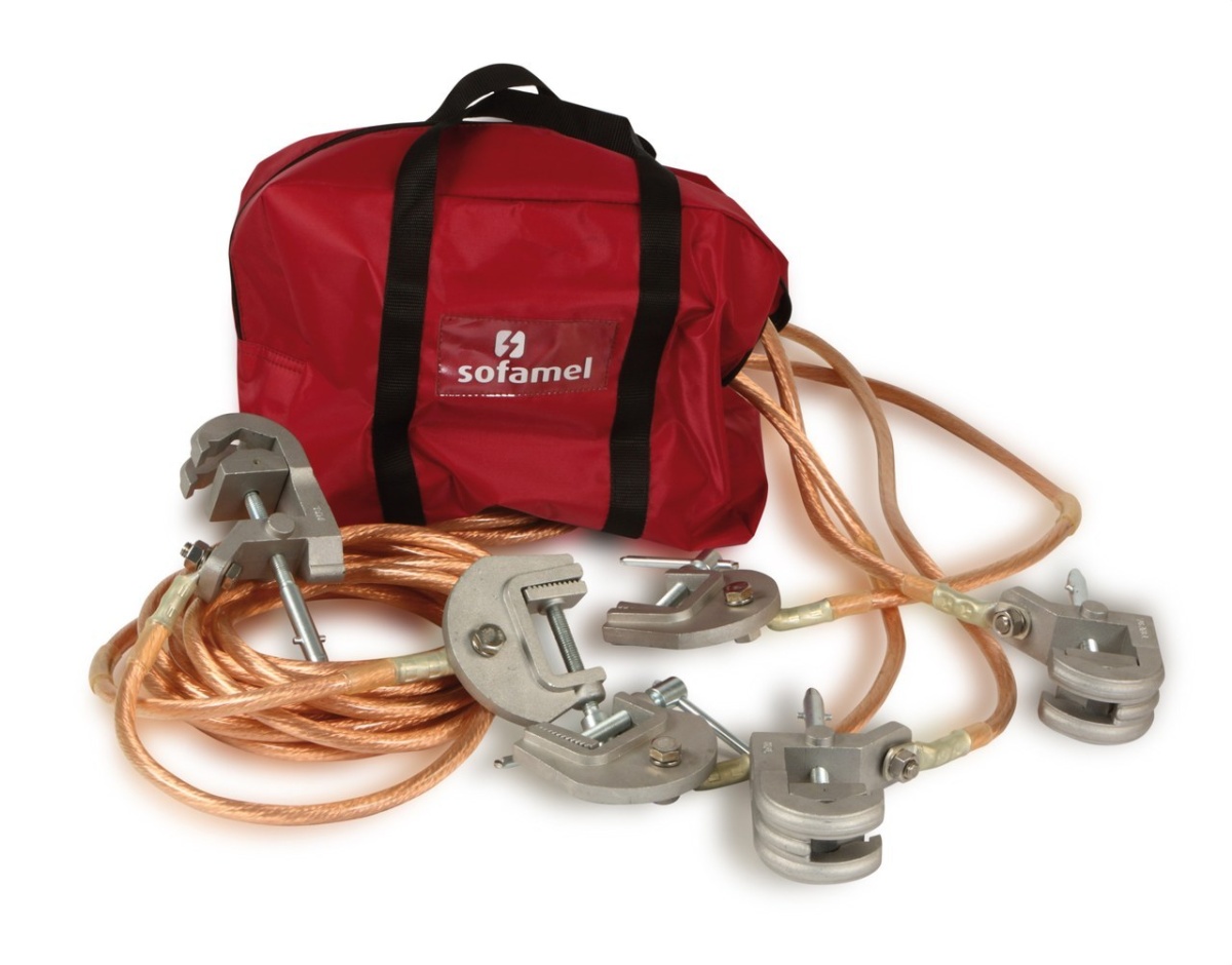 Equipo de puesta a tierra y cortocircuito de fases para líneas aéreas y subestaciones de alta tensión. El objetivo principal de su instalación es la protección del trabajador ante la puesta en funcionamiento accidental o un posible retorno de tensión durante los trabajos de reparación. Según norma IEC 61230. Compuesto por 3 pinzas MPL de aleación de aluminio y apriete por tornillo para conductores cilíndricos de diámetro comprendido entre 5 y 45mm pletinas de máx. 45mm, barras de distribución flexibles de máx. 45mm y puntos de fijación de entre 20 y 25mm, 3 cables de cobre con aislamiento de PVC. Sección y longitud según modelo, 3 tornos de puesta a tierra TT-50 y 3 fundas para el transporte y almacenamiento del equipo.