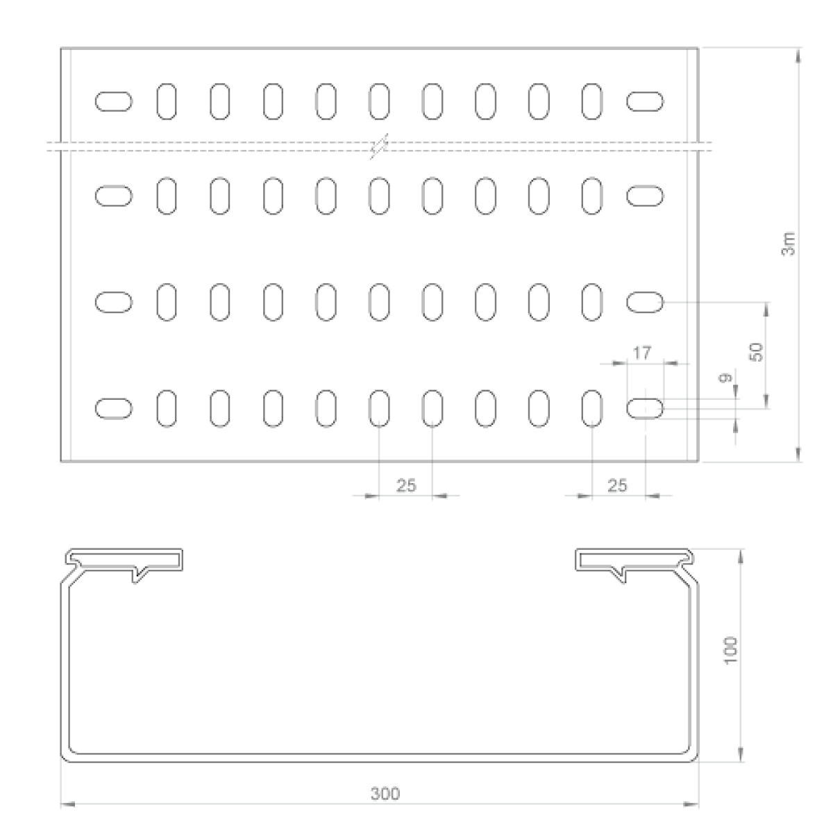 Caminho de cabos isolante perfurado Unex 100x300 em U48X sem halogéneos