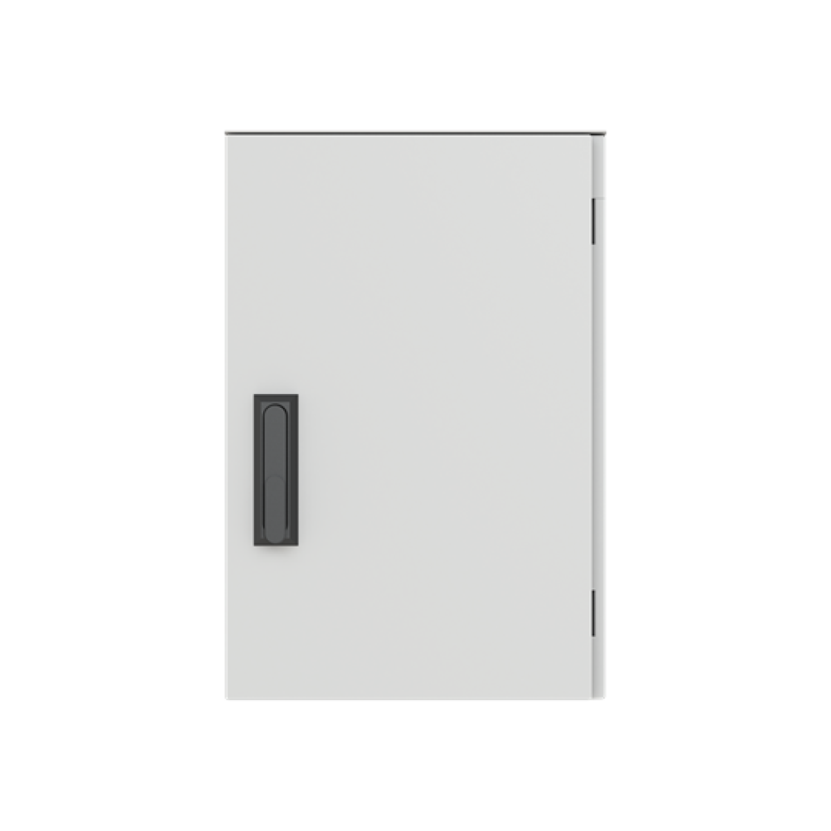 The cabinets are made of light grey (RAL 7035), through-dyed, hot-pressed, glass-fibre reinforced polyester. Threaded bolts are available for mounting the mounting plate and mounting frame. ARIA cabinets offer optimum safety for both users and equipment, thanks to the protective insulation and the high degree of protection of up to IP66. ARIA cabinets withstand continuous temperatures up to 70°C (peak temperatures up to 130°C). Self-extinguishing and halogen-free. Rated insulation voltage Ui = 1000V. PA645 Cabinet 615x415x230 ARIA, swivelling lever handle, 3-point lock IP66, IK08