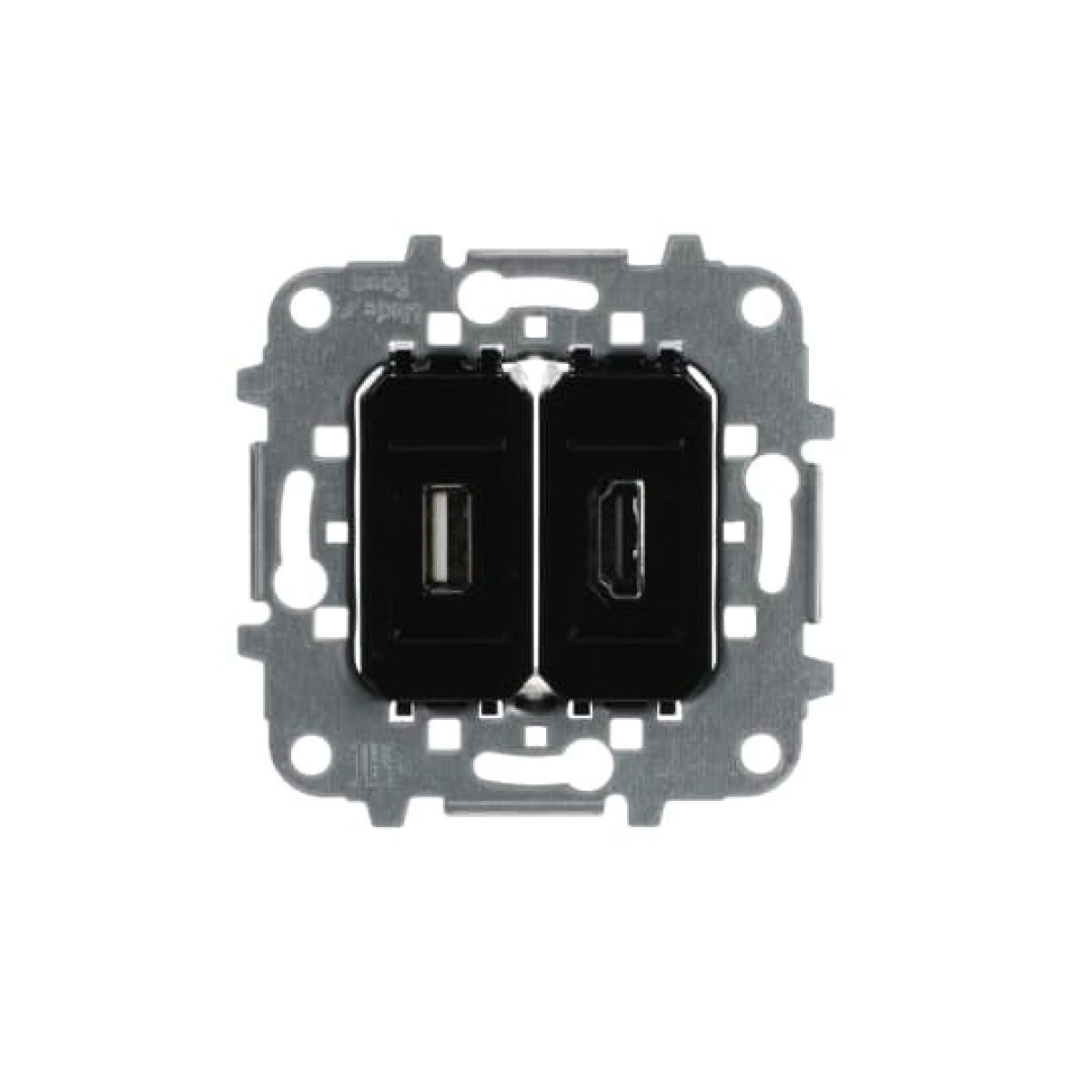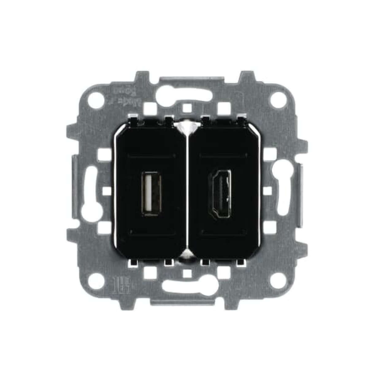 Front: 1x HDMI connector (Type A connector) & 1x USB 2.0 connector (Type A connector) Rear: HDMI screwless terminals (20 wires) & USB screw terminals (5 wires) Supports HDMI 1.4 and 2.0 Without fixing claws Cover plate code: 8555.1