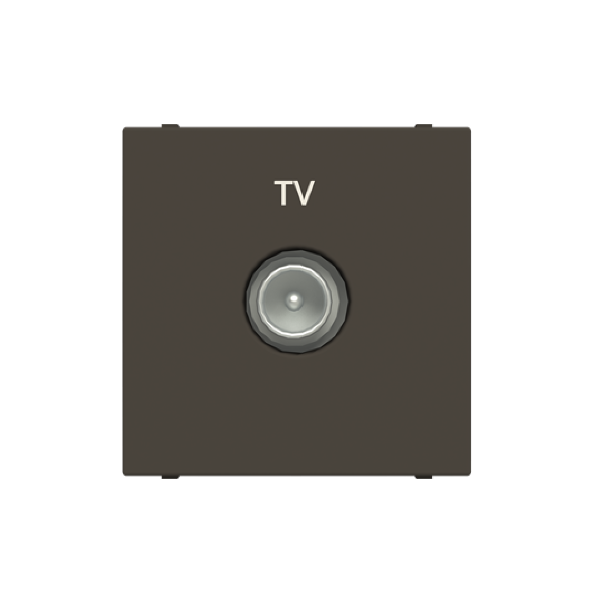 Color: Anthracite. Single TV outlet - Dead-end M type - 9,52mm male For 75Ω impedance coaxial cable Avoid small bending radius Frequency range: 5 - 2.400 Mhz Connection loss: 1 dB Isolation: >16 dB Return loss: >7,6 dB DC path (Vdc / mA / Tono): 34 max. / 500 max. / 22kHz - DiSEqC Size: 2 modules.