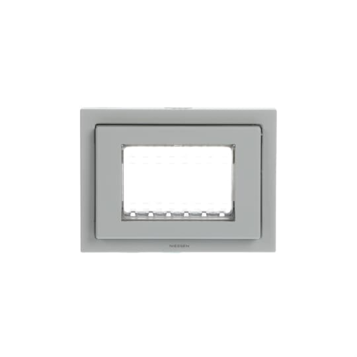 Frames for flush mounted installation. Watertight frame IP55. Grey colour. Supplied without mechanisms. With lib that provides the direct operation of the mechanisms, with 120º opening angle. Mounting plate included.