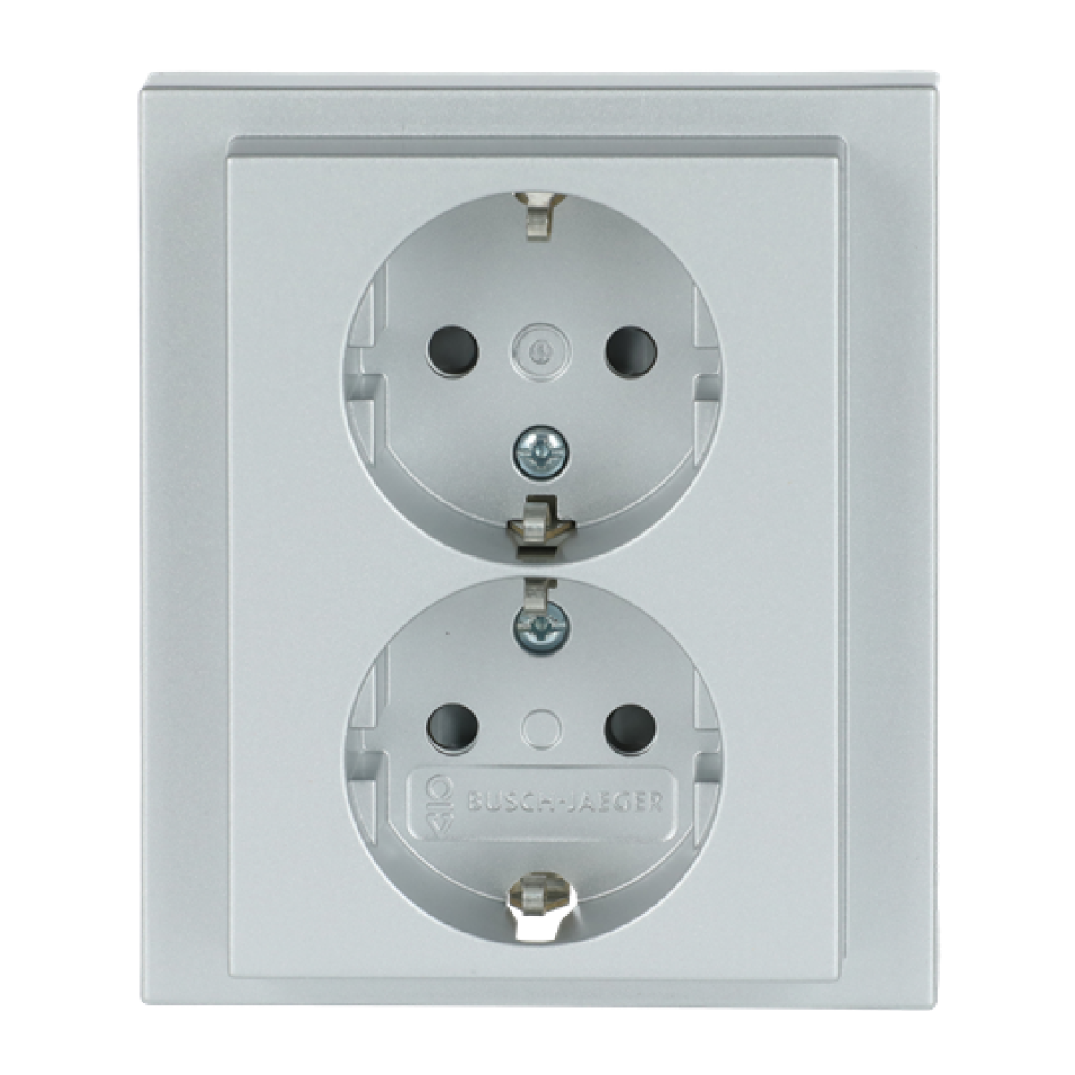 SCHUKO Double socket Safety Shutter aluminium silver - future linear
