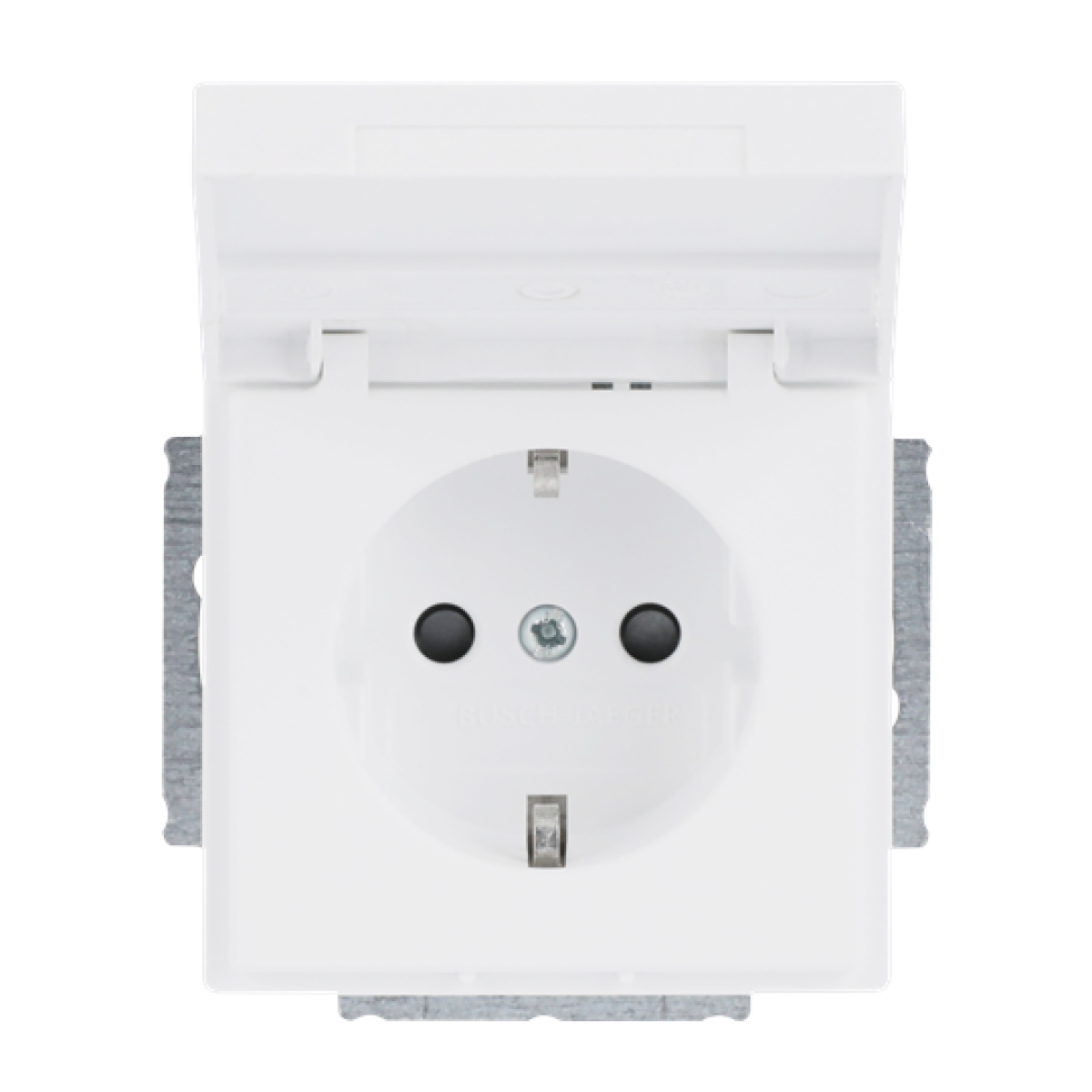 SCHUKO Socket insert with labelling field Safety Shutter with Hinged Lid with label space studio white matt - Platform 63