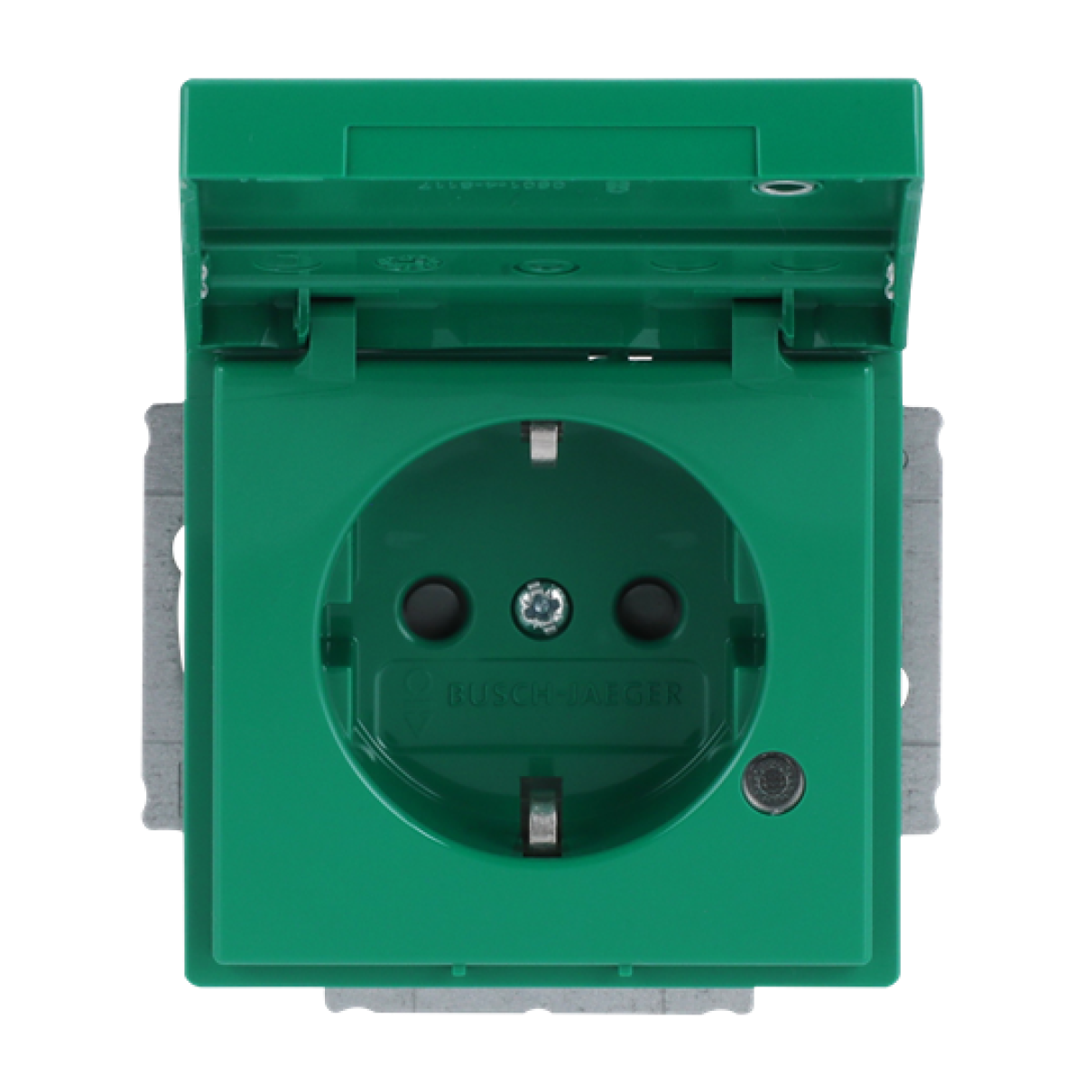 SCHUKO Socket insert with labelling field Safety Shutter with LED Control light with Hinged Lid with label space green - Platform 63
