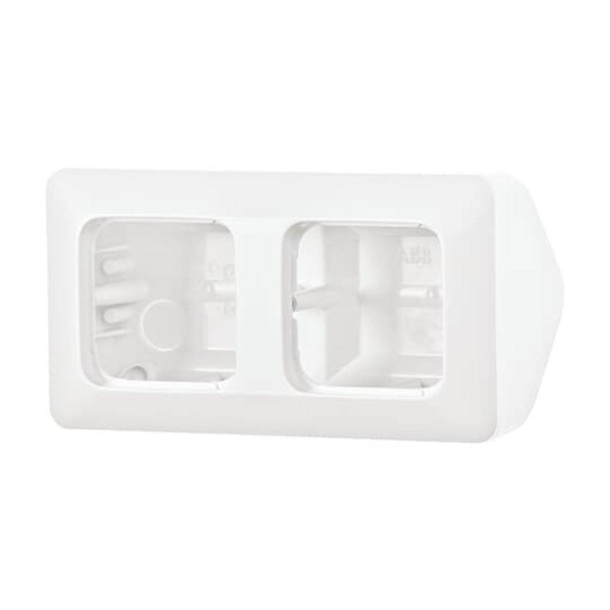 Housing for inserts and cover plates from the flush-mounted range. Consisting of surface-mounted housing for corner mounting, including 2gang cover frame.